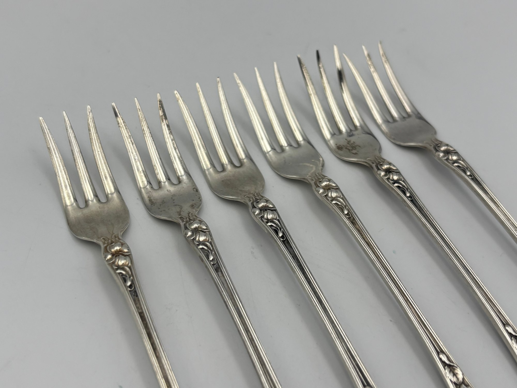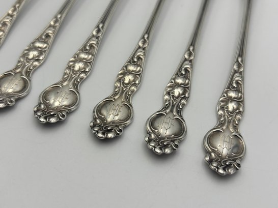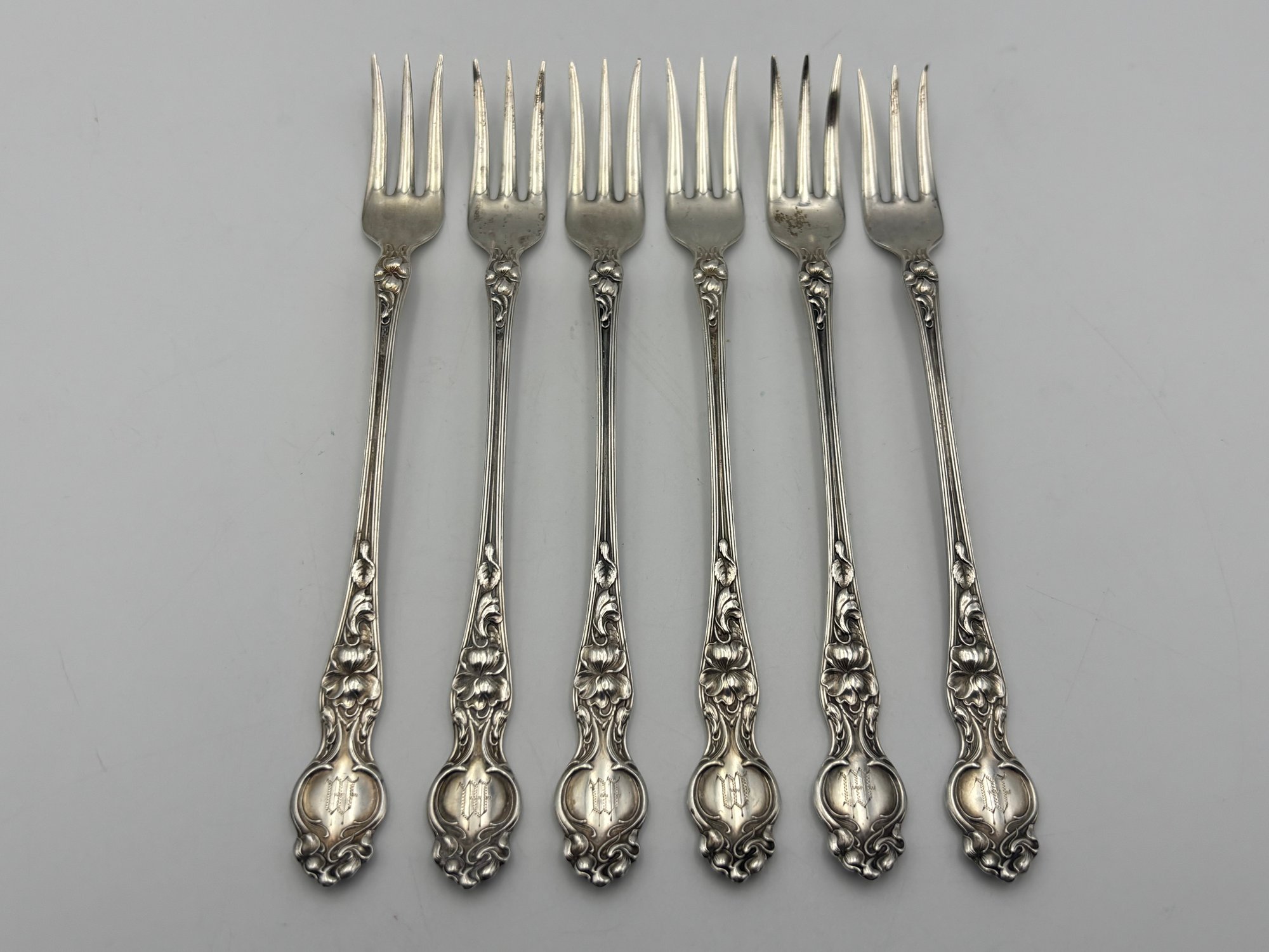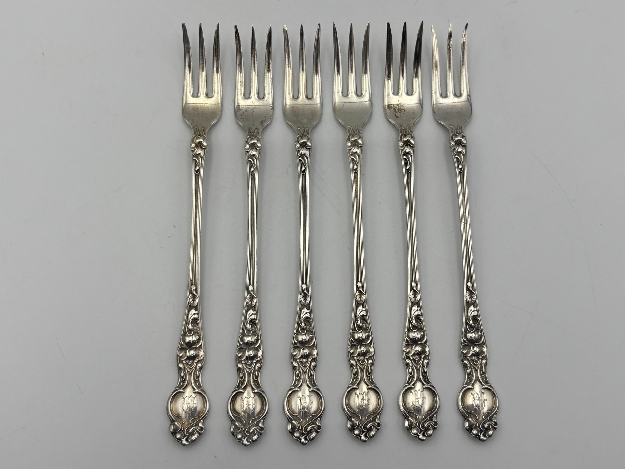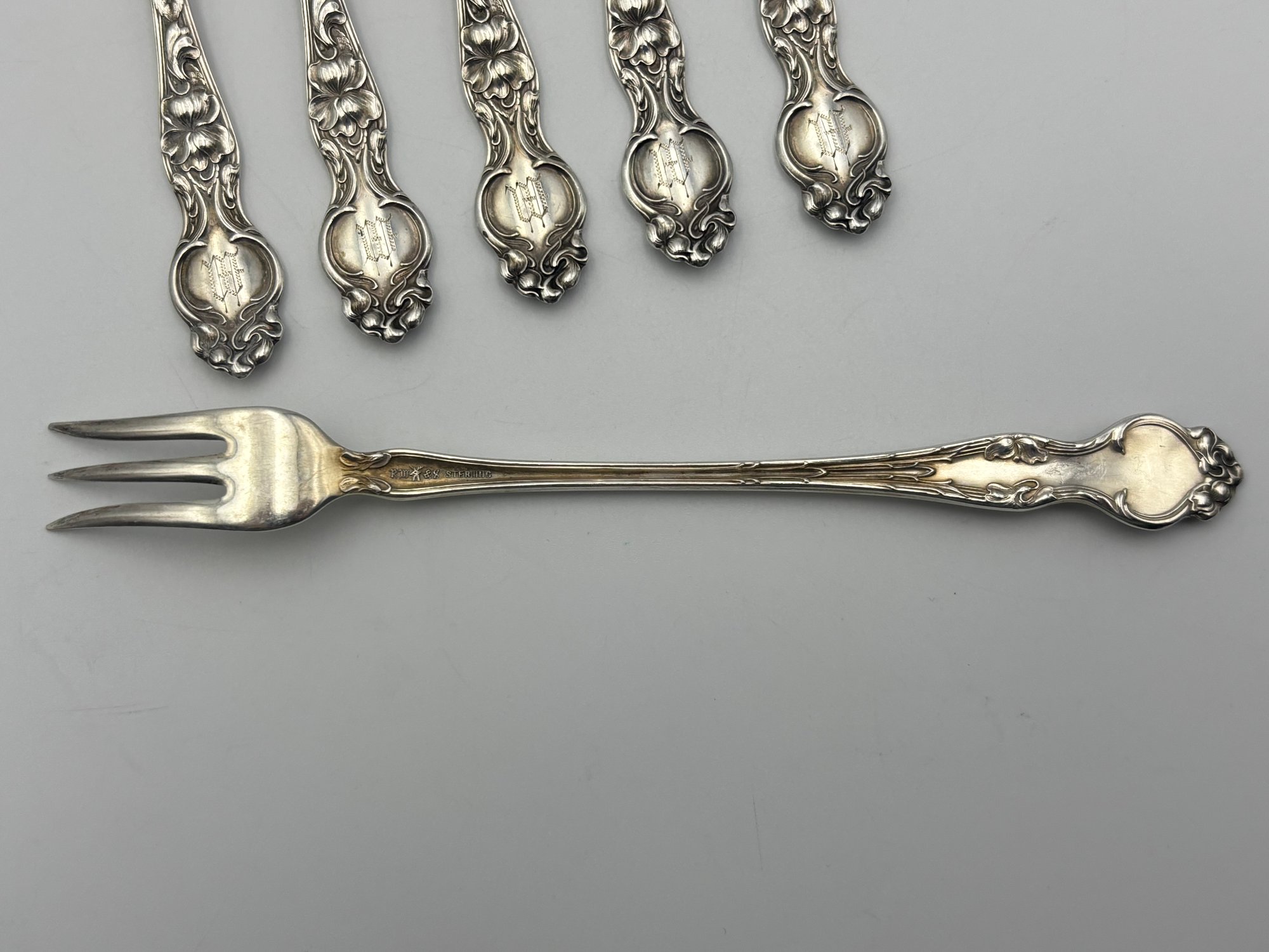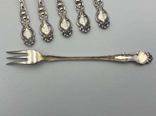 Lot Of 6 Monogramed Wallace Sterling Silver Cocktail / Pickle Fork 5.9" (3.16oz)