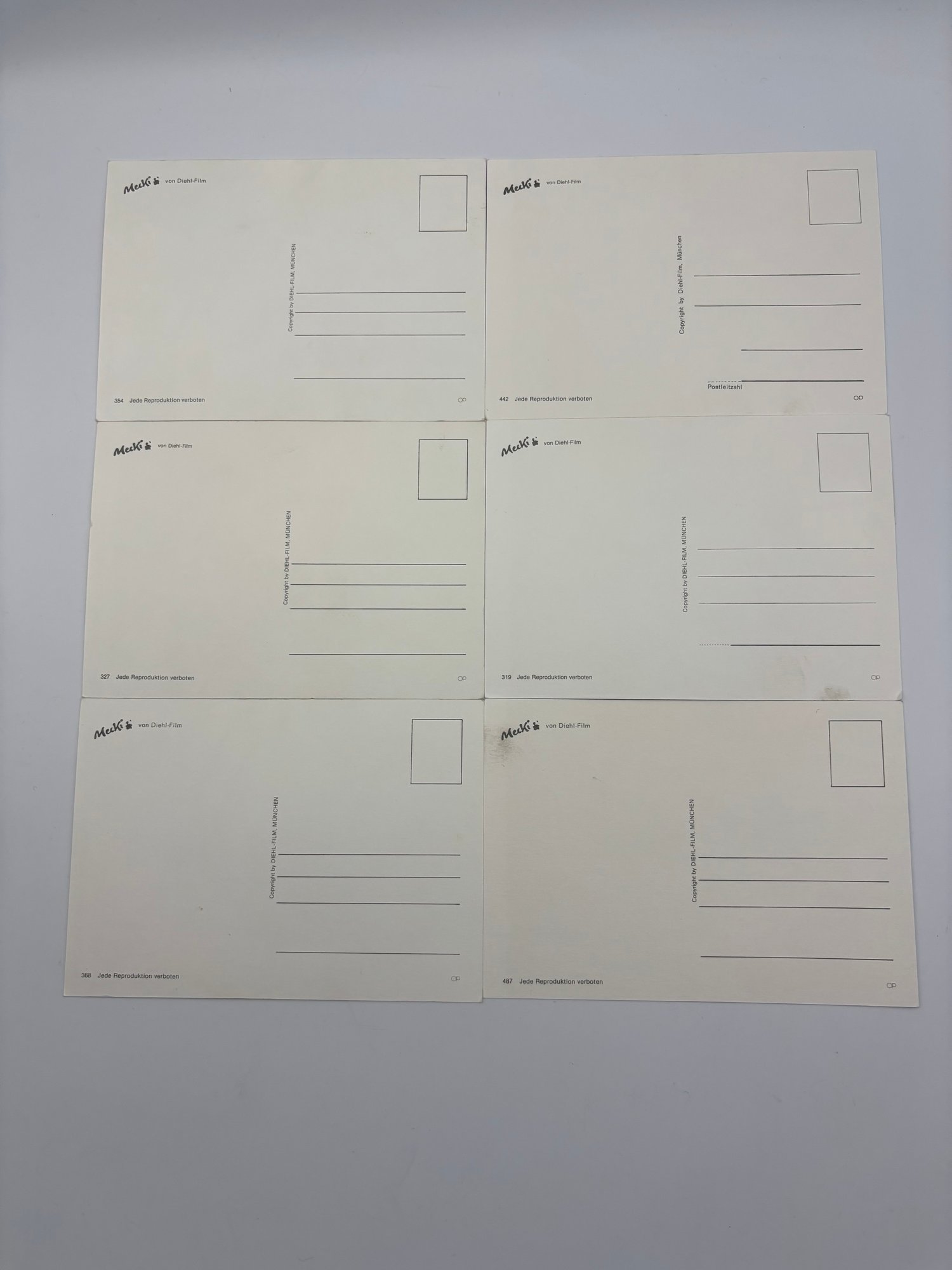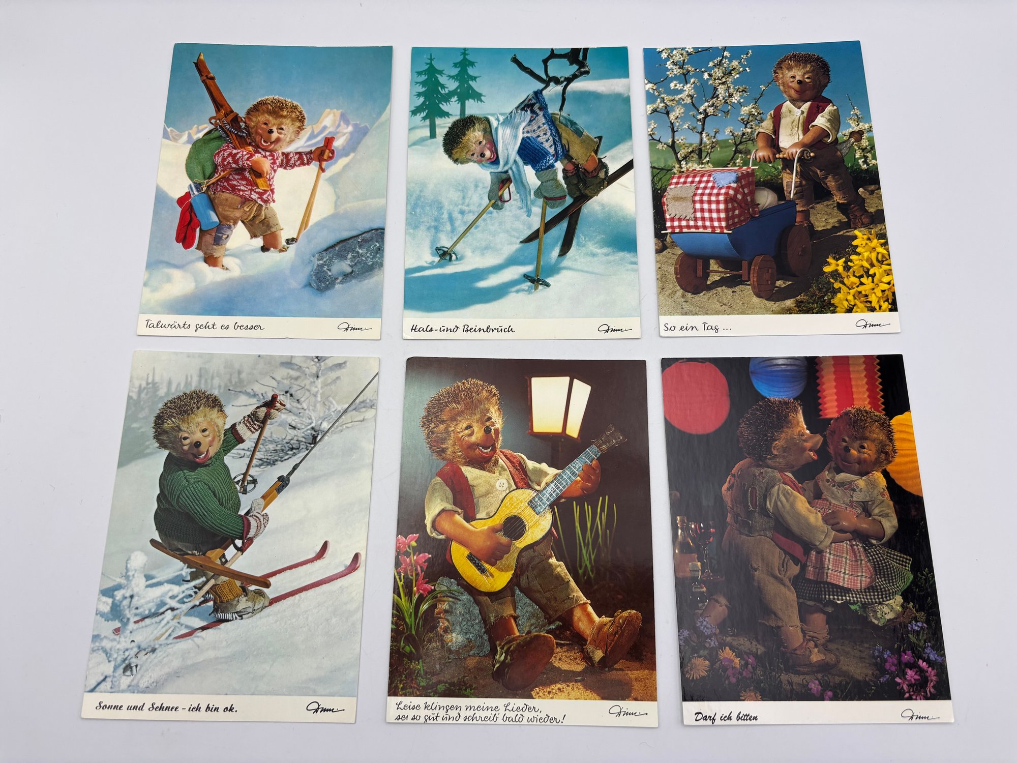 Lot Of 6 Vintage Mecki Hedgehog Ski Skiing Steiff Postcards