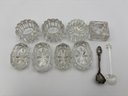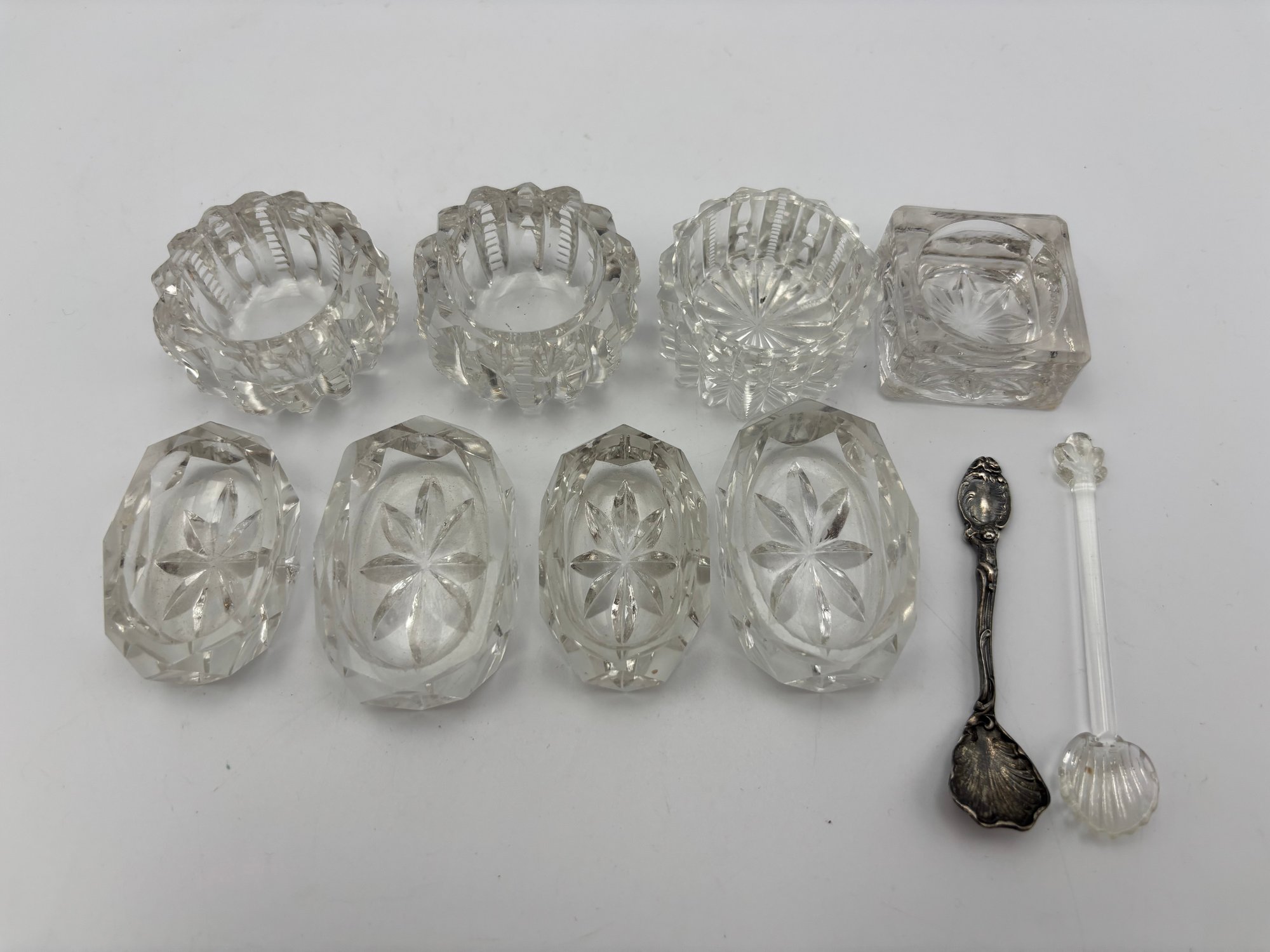 Lot Of 8 Antique Salt Pinch Holders Crystal With 2 Spoons