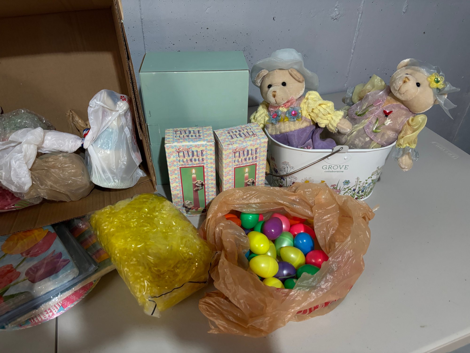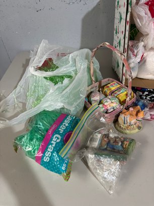 Lot Of Easter Holiday Decor - Baskets, Eggs, Bunnnies, Easter Village