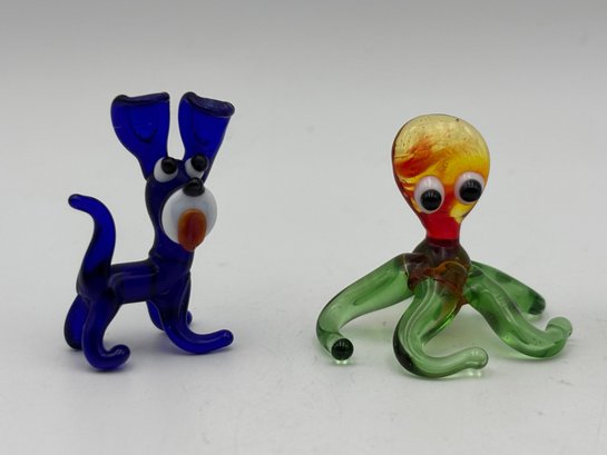Lot Of Murano Glass Miniatures, Octopus, Dog, Figures
