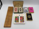 Lot Of Vintage Games - Playing Cards, Cribbage Set, Bridget