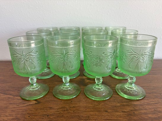 Set Of 12 Indiana Tiara Chantilly Green Sandwich Glass Goblets