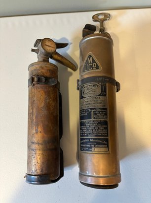Set Of 2 Antique Brass Fire Extinguishers Wil-X