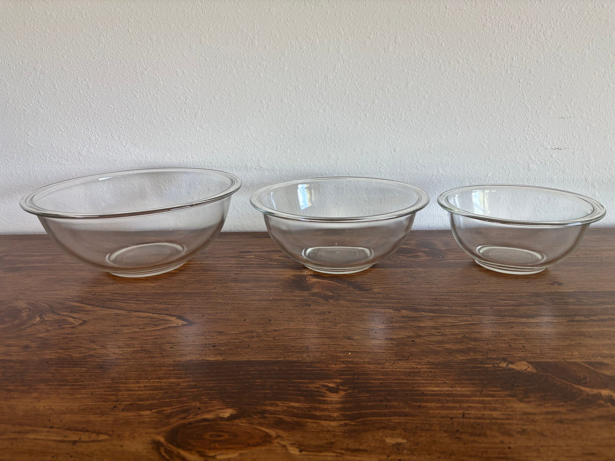 Set Of 3 Clear Vintage PYREX Nesting Bowls 2.5L, 1.5L, 1L Bowl