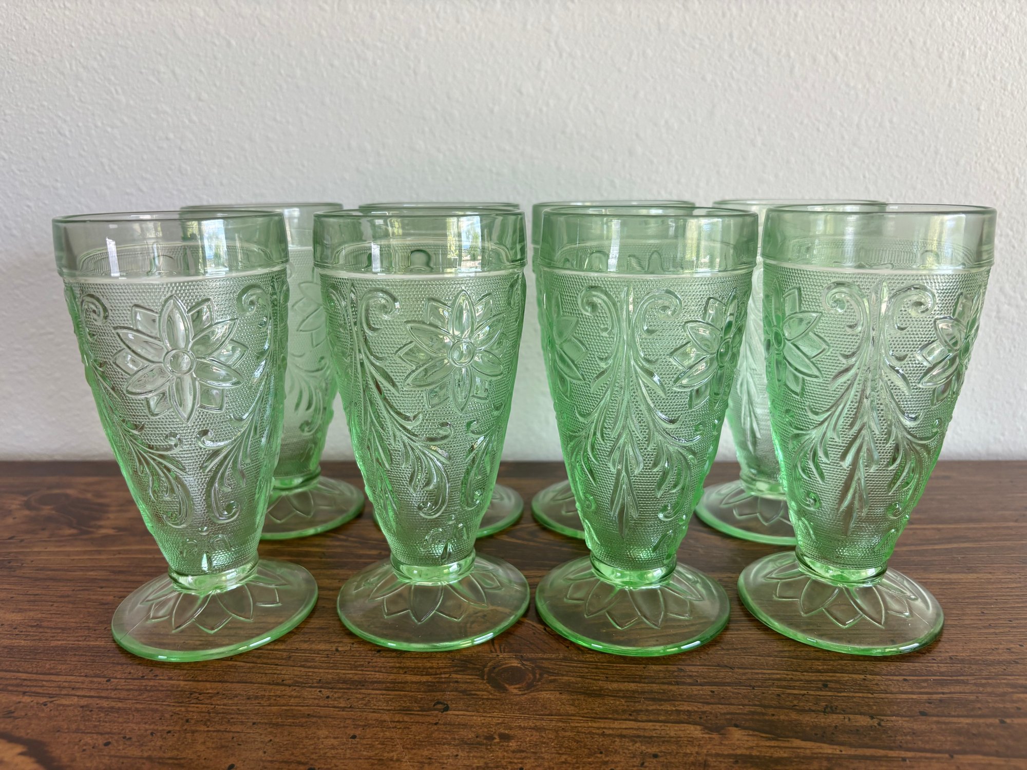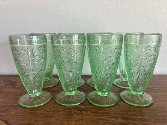 Set Of 8 Indiana Tiara Chantilly Green Sandwich Glass Iced Tea Footed Tumbler