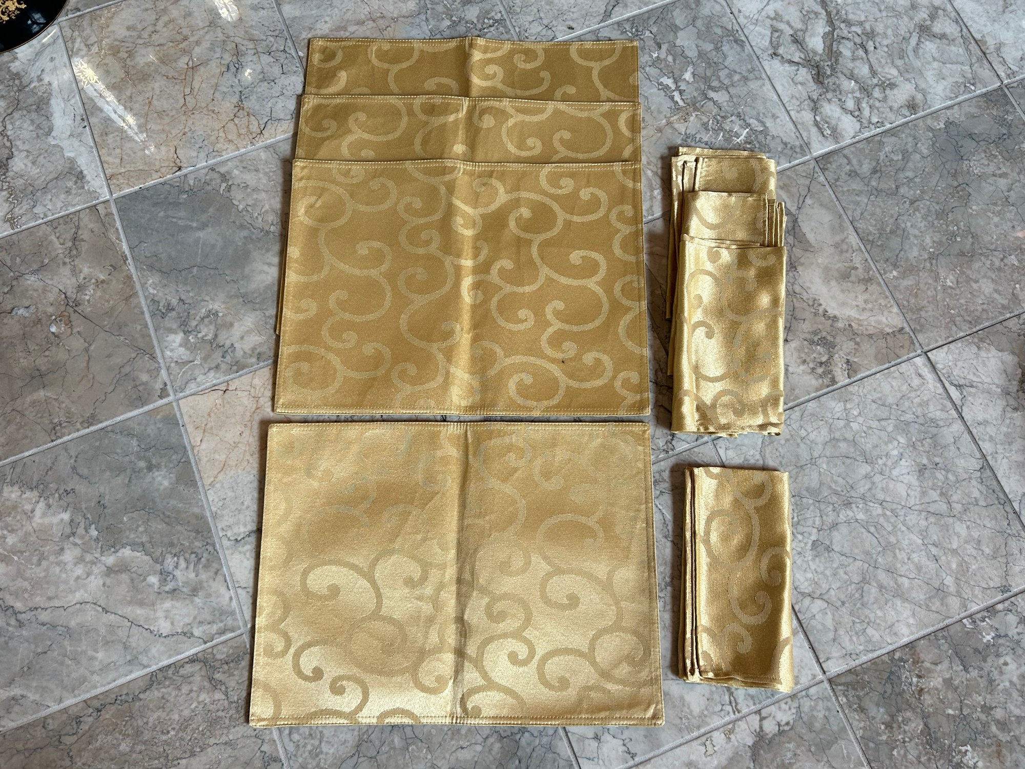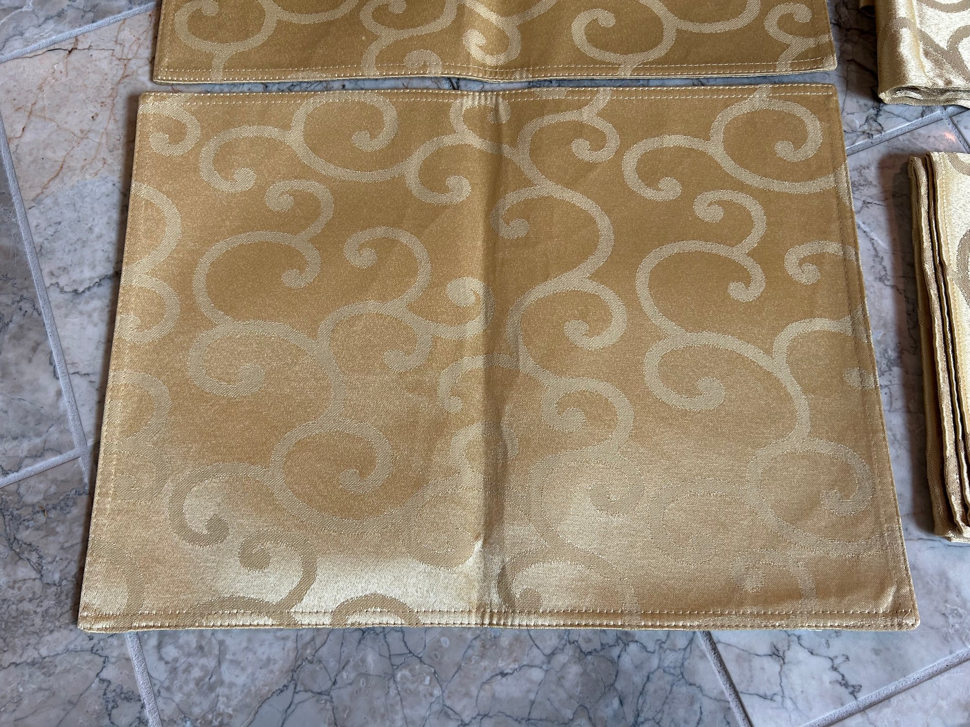 Set Of Four Gold Cotton / Poly Blend Dining Table Placemats & Matching Napkins