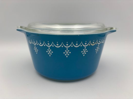 Vintage 1.5 Qt PYREX Snowflake Garland Blue #473