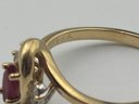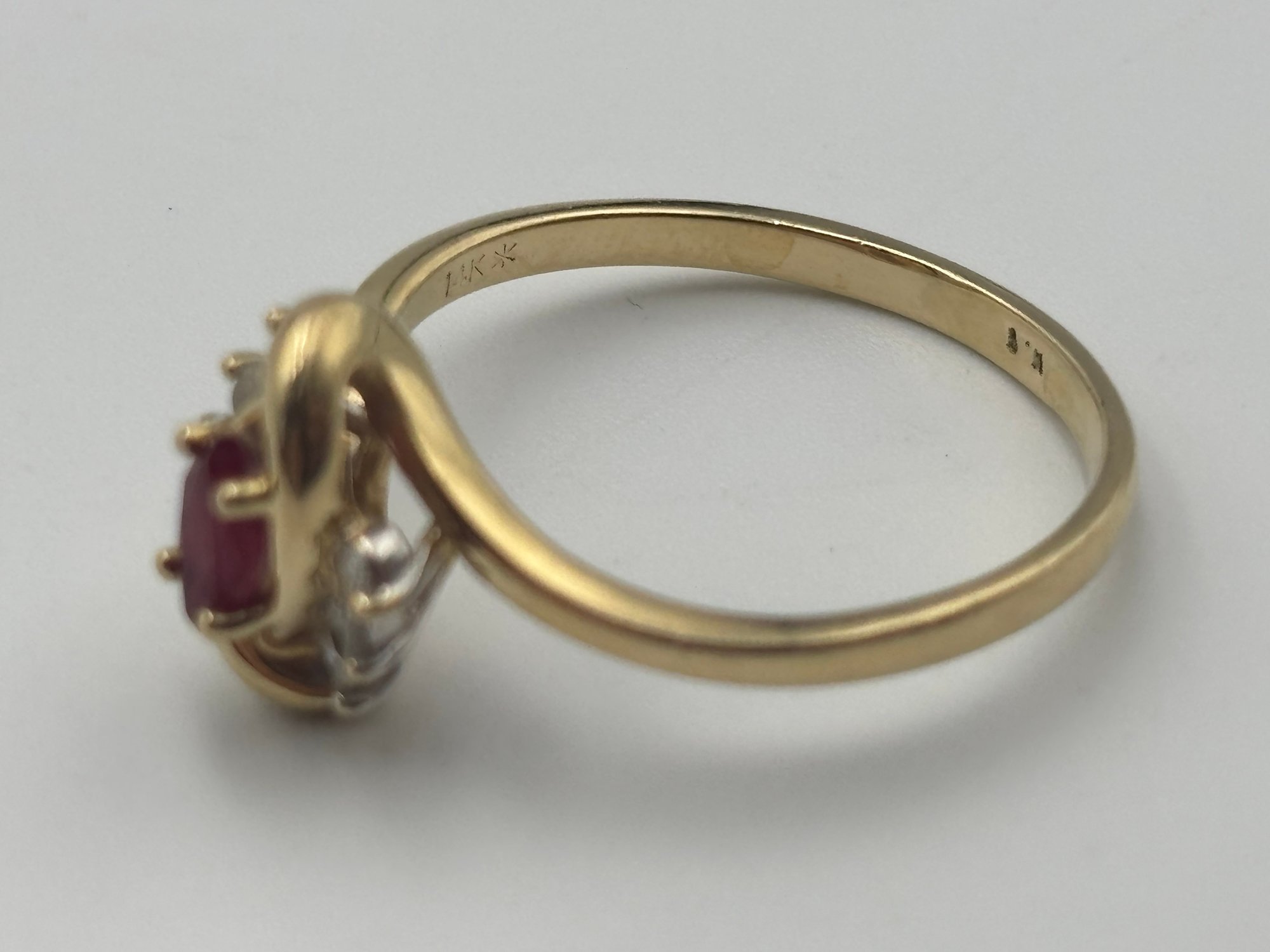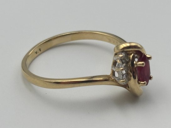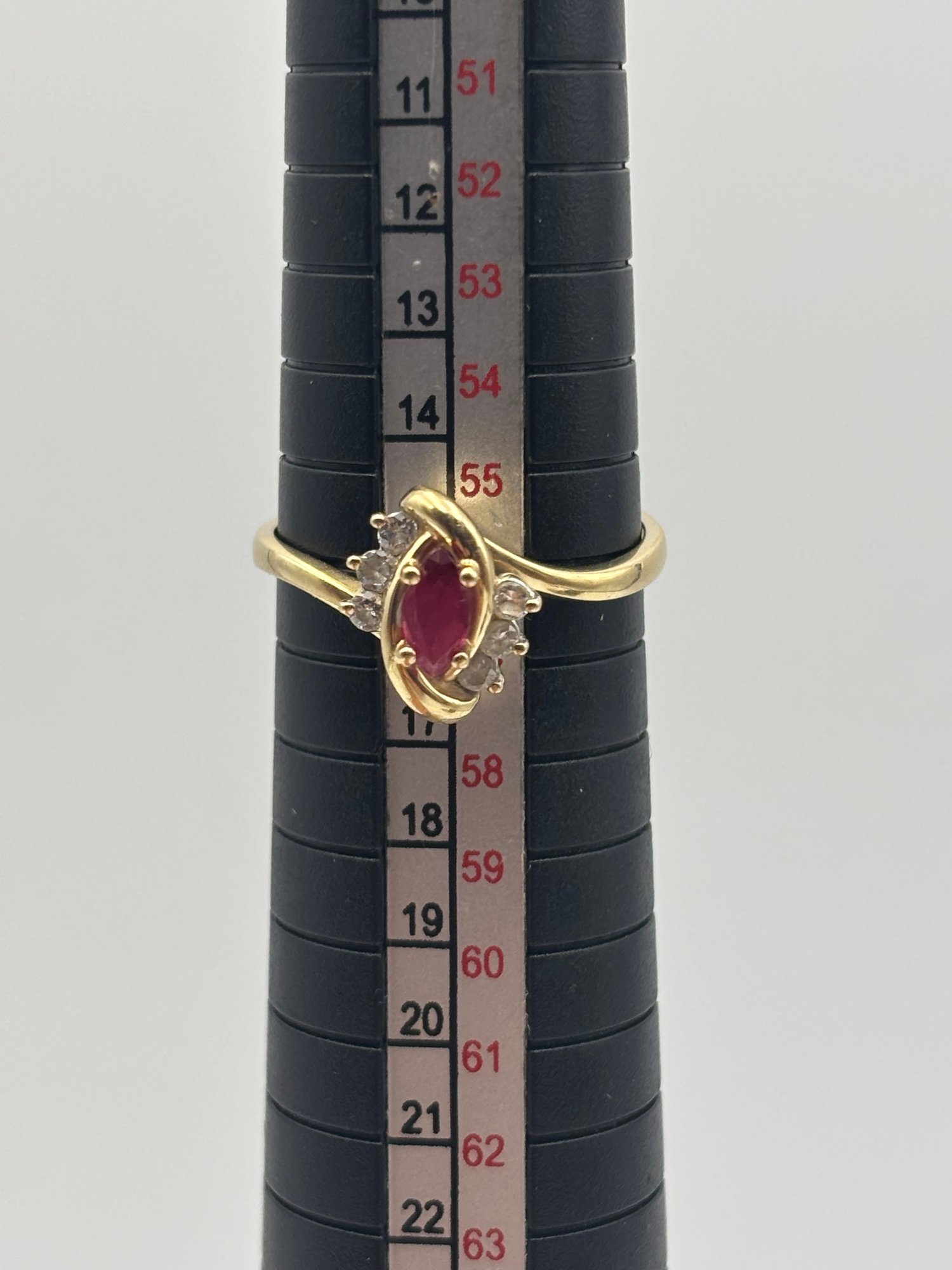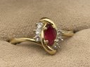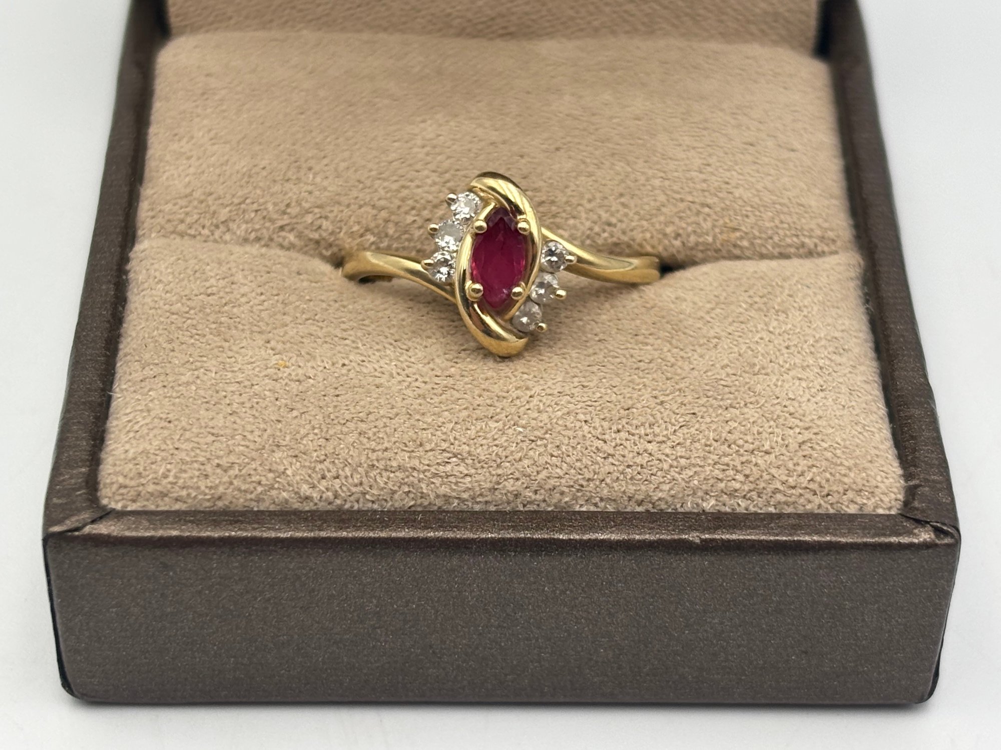 Vintage 14K Yellow Gold Marquise Ruby & Diamond Ring Size 7 3/4 (2.67g)