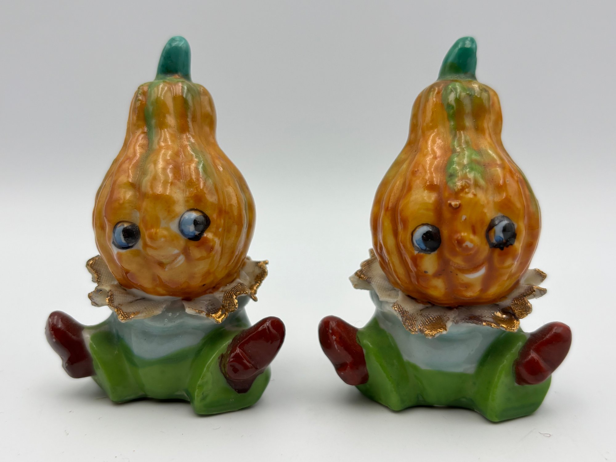 Vintage 1950 Anthropomorphic Gourd Squash Salt And Pepper Shakers
