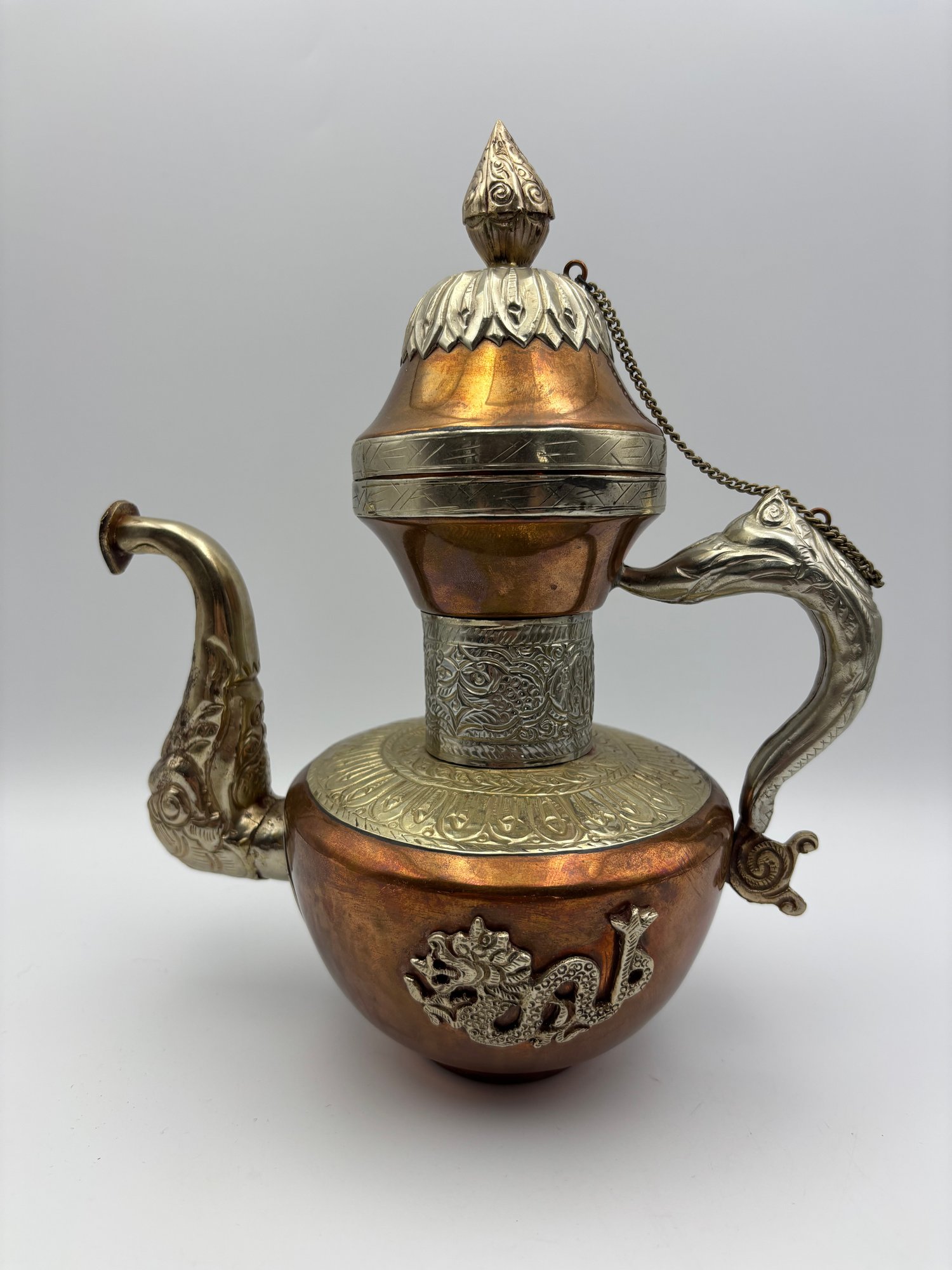 Vintage 1950s/60s Tibetan Himalayan Brass, Silver, & Copper Dragon Teapot
