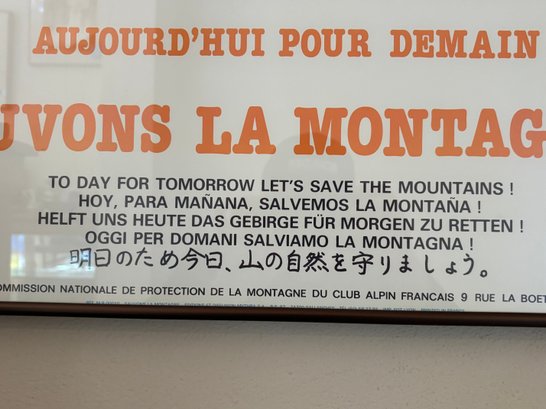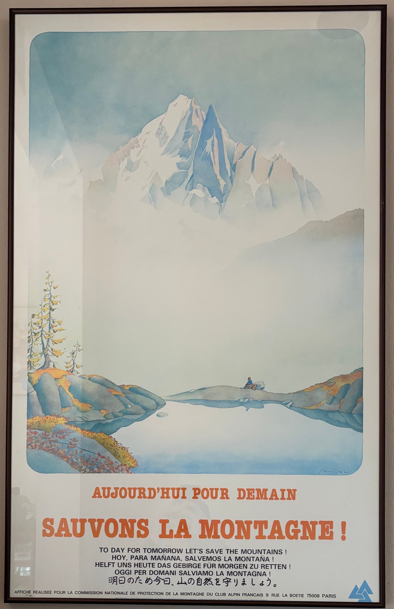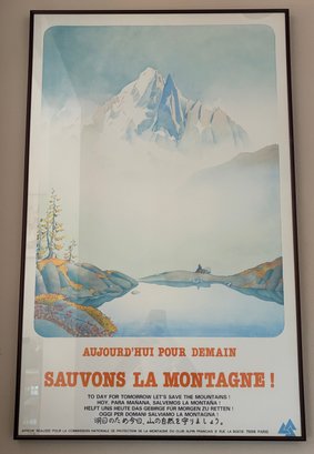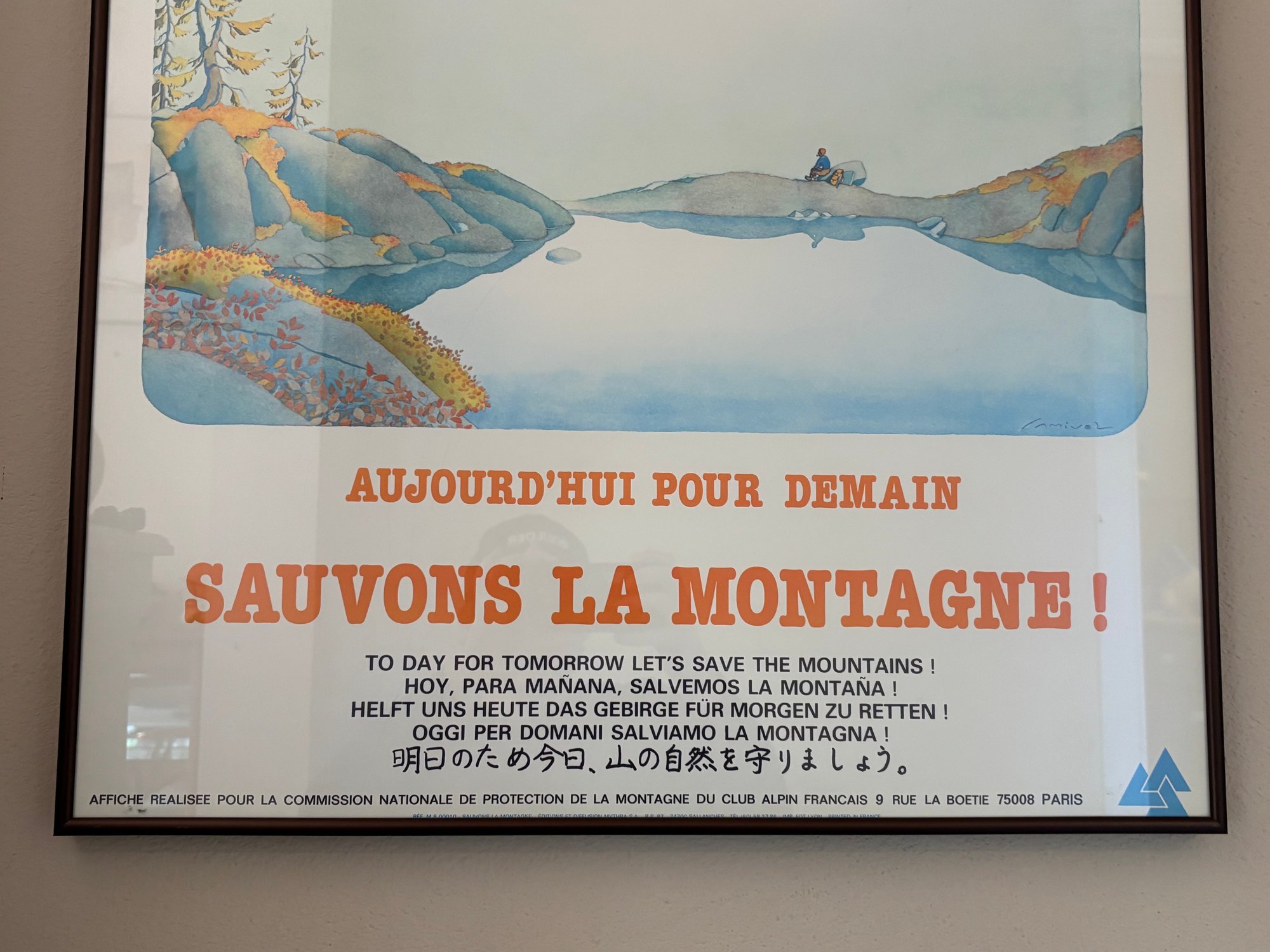Vintage 1970s French Alpine Sauvons La Montagne Poster In Frame 39 X 24
