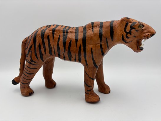 Vintage 1970s Leather Wrapped African Tiger Animal Figurine 11"