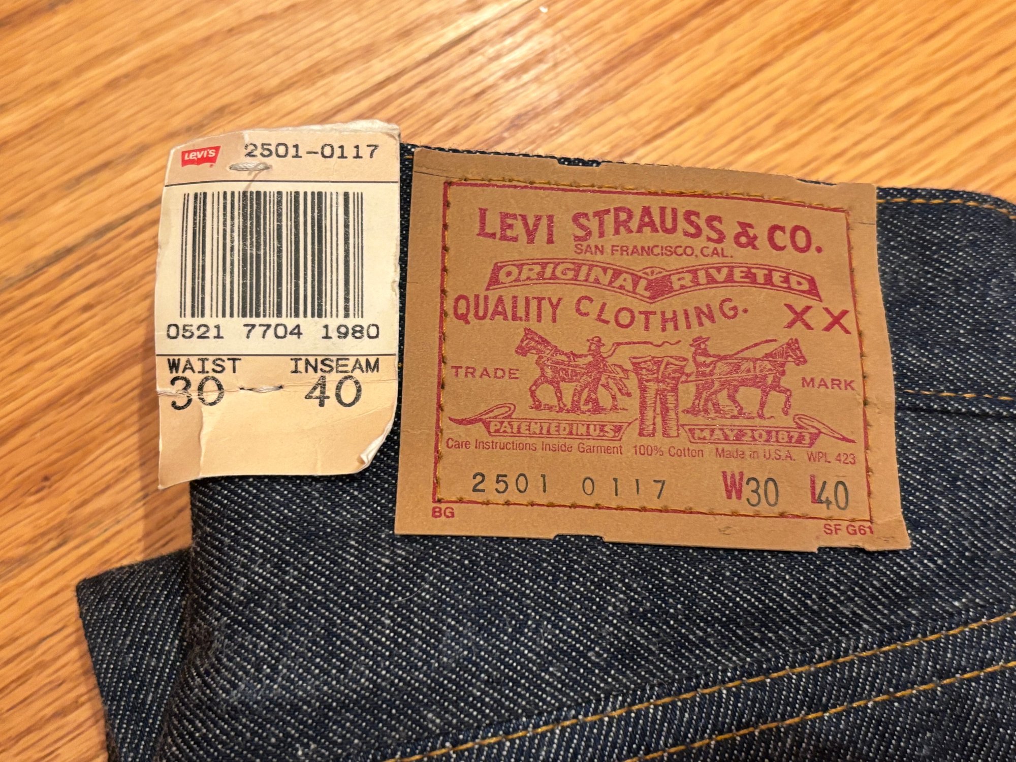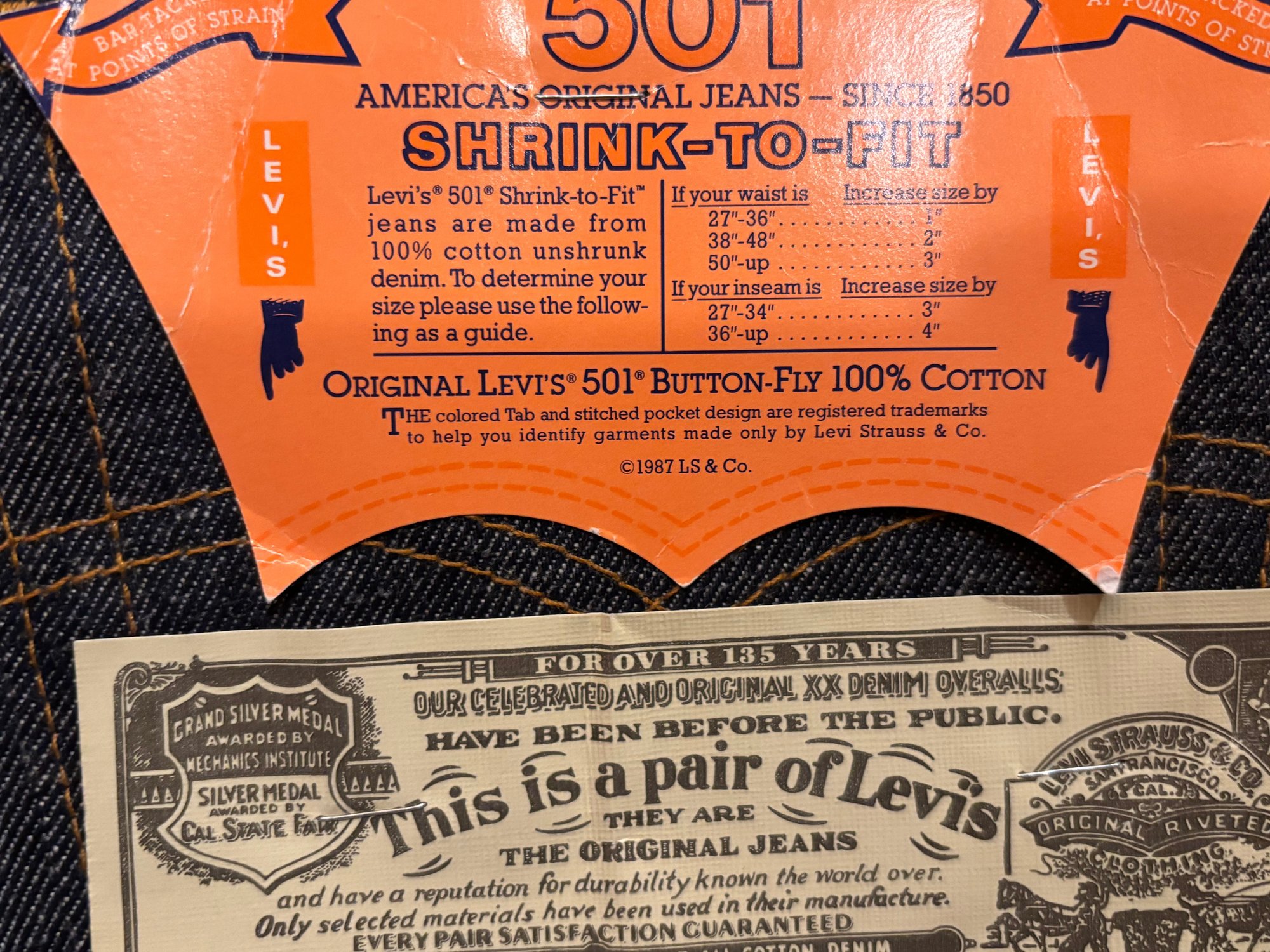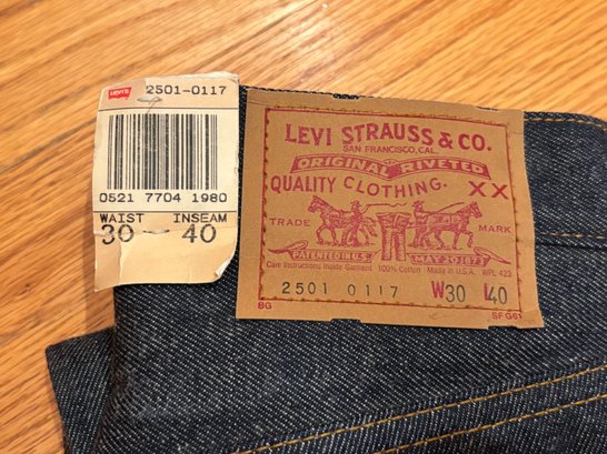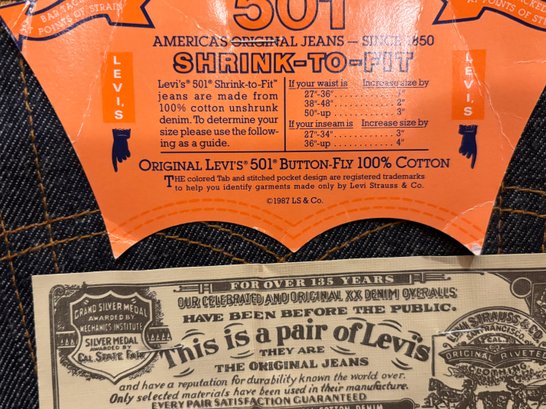Vintage 1987 Deadstock Levis 501 Jeans 30x40 Made In USA NWT Levi Shrink To Fit Denim