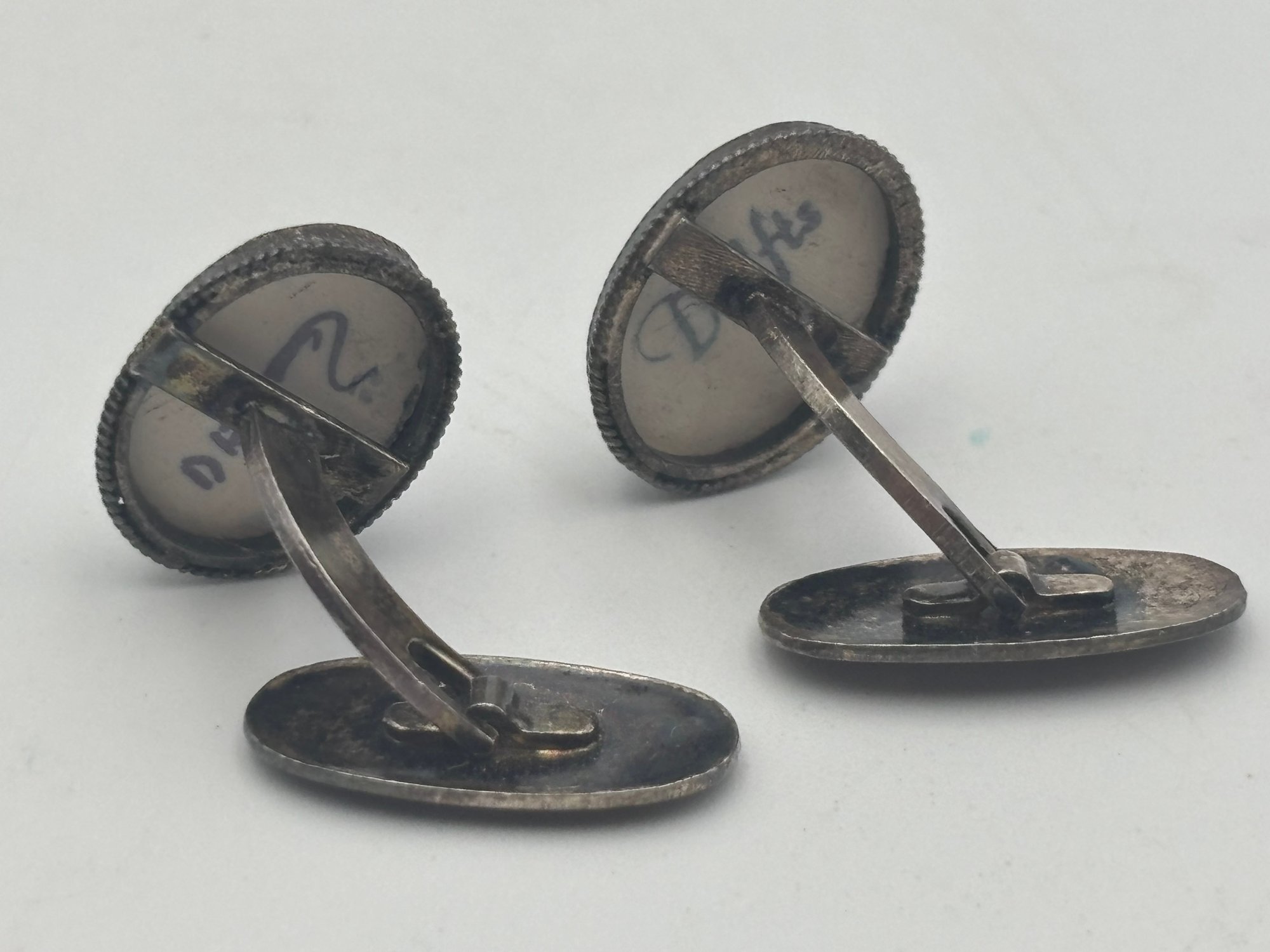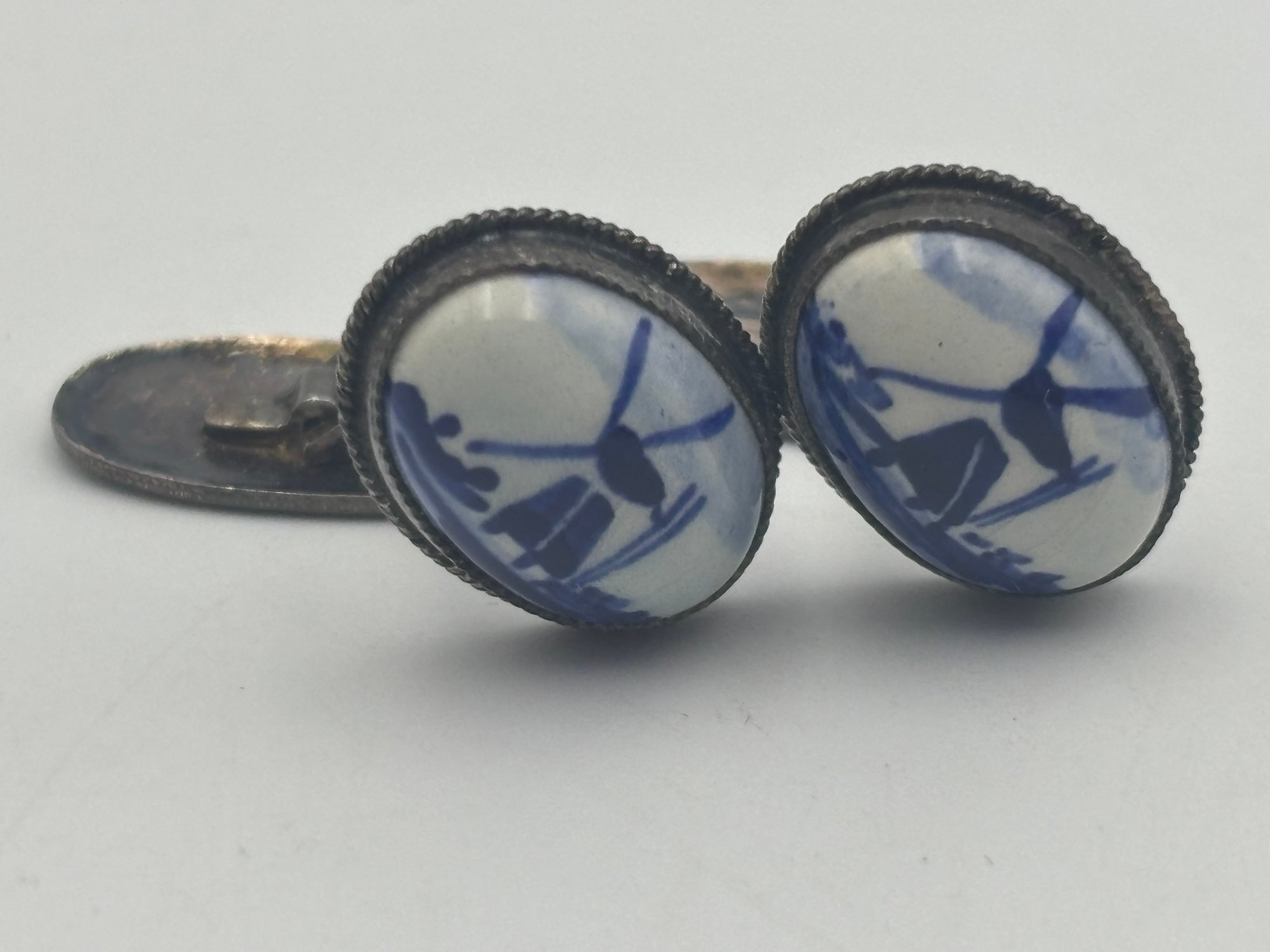 Vintage .925 Sterling Silver Delft Holland Dutch Windmill Ceramic Blue White Cufflinks
