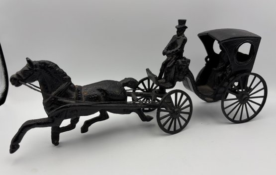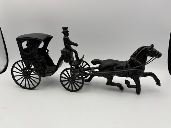 Vintage Antique Cast Iron Horse & Carriage Horse Buggy Toy