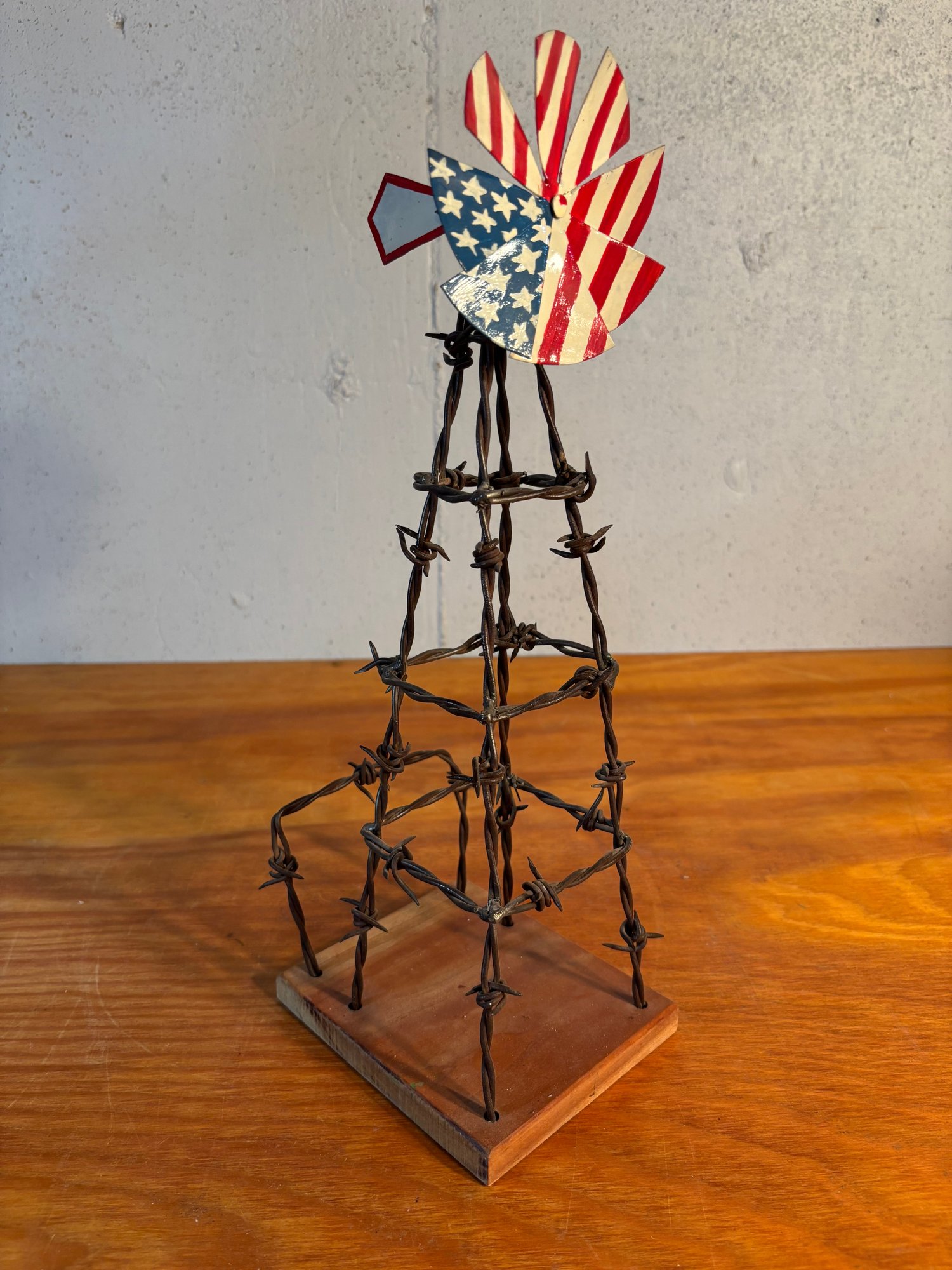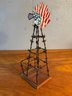 Vintage Barbed Wire Windmill Folk Art With American Flag