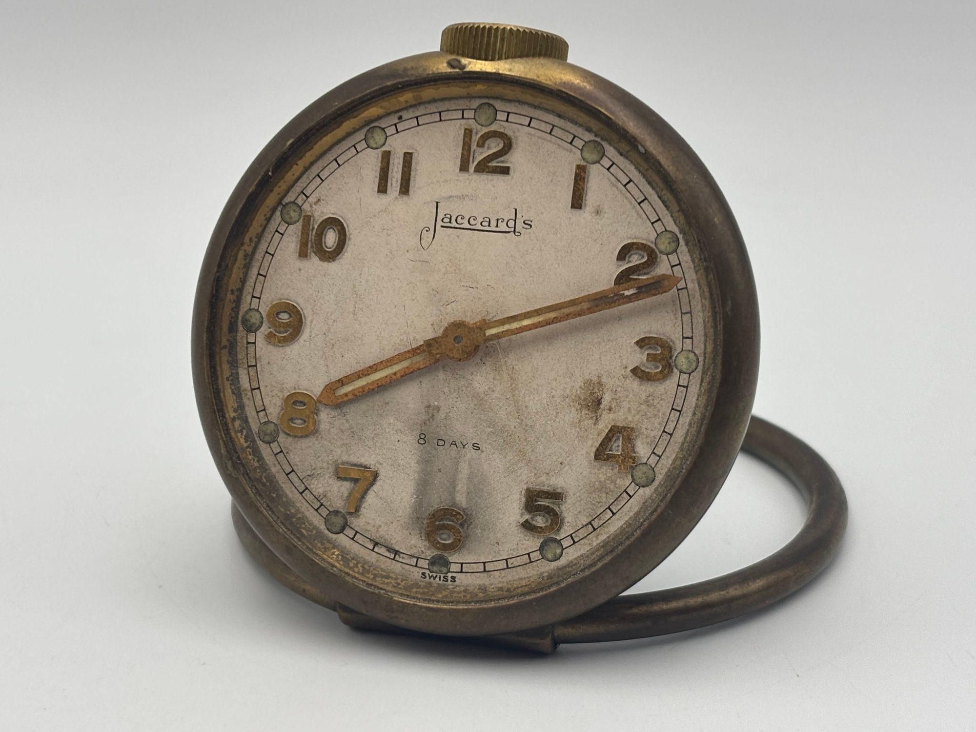 Vintage Brass Jarccard's 8-Day Travel Clock Swiss Made - Not Working, No Glass
