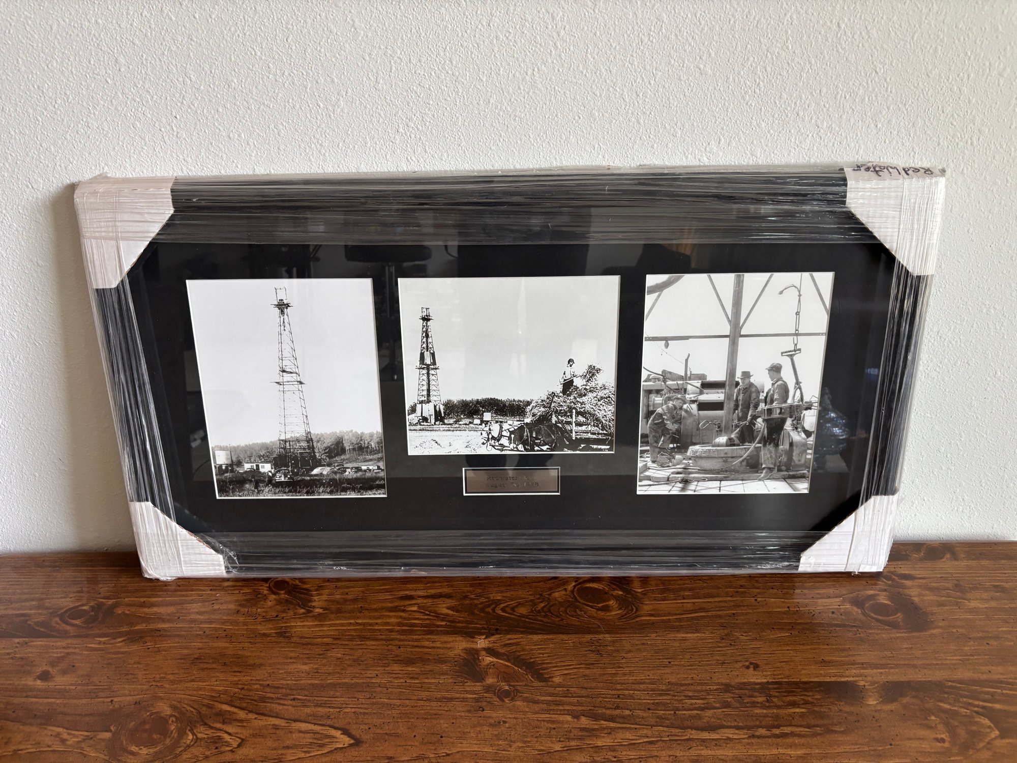 Vintage Canadian Framed Oil Drilling Photo - Imperial Redwater 1948 - 34 X 17