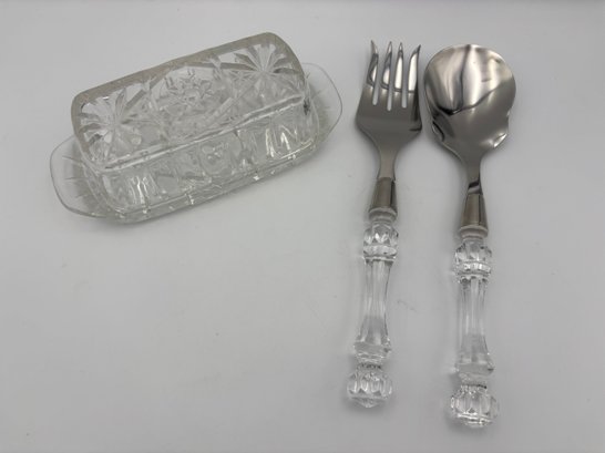 Vintage Crystal Butter Dish Tiara Brand And Fastoria Crystal Serving Utensils