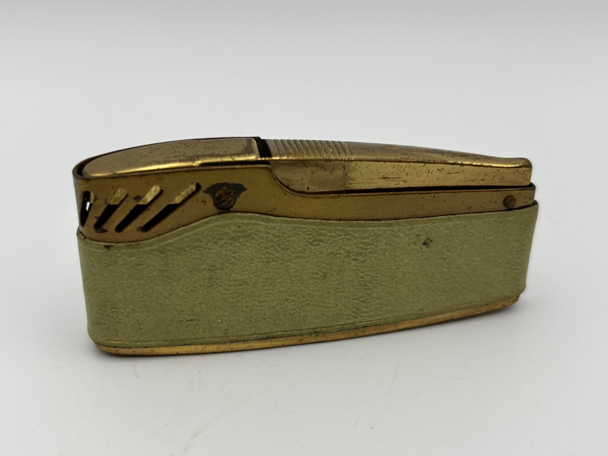 Vintage Gold Metal Prince Gardner Lighter With Leather Wrap