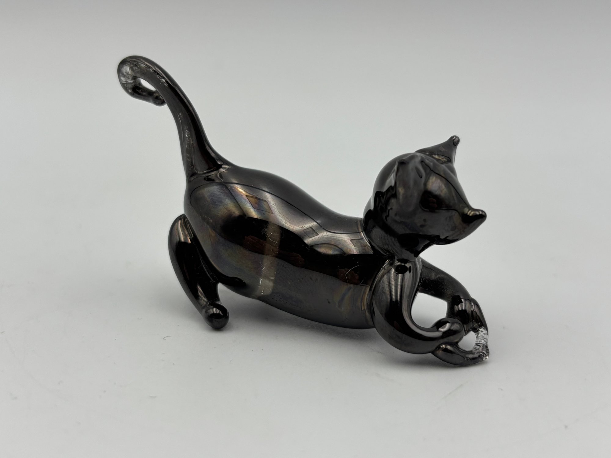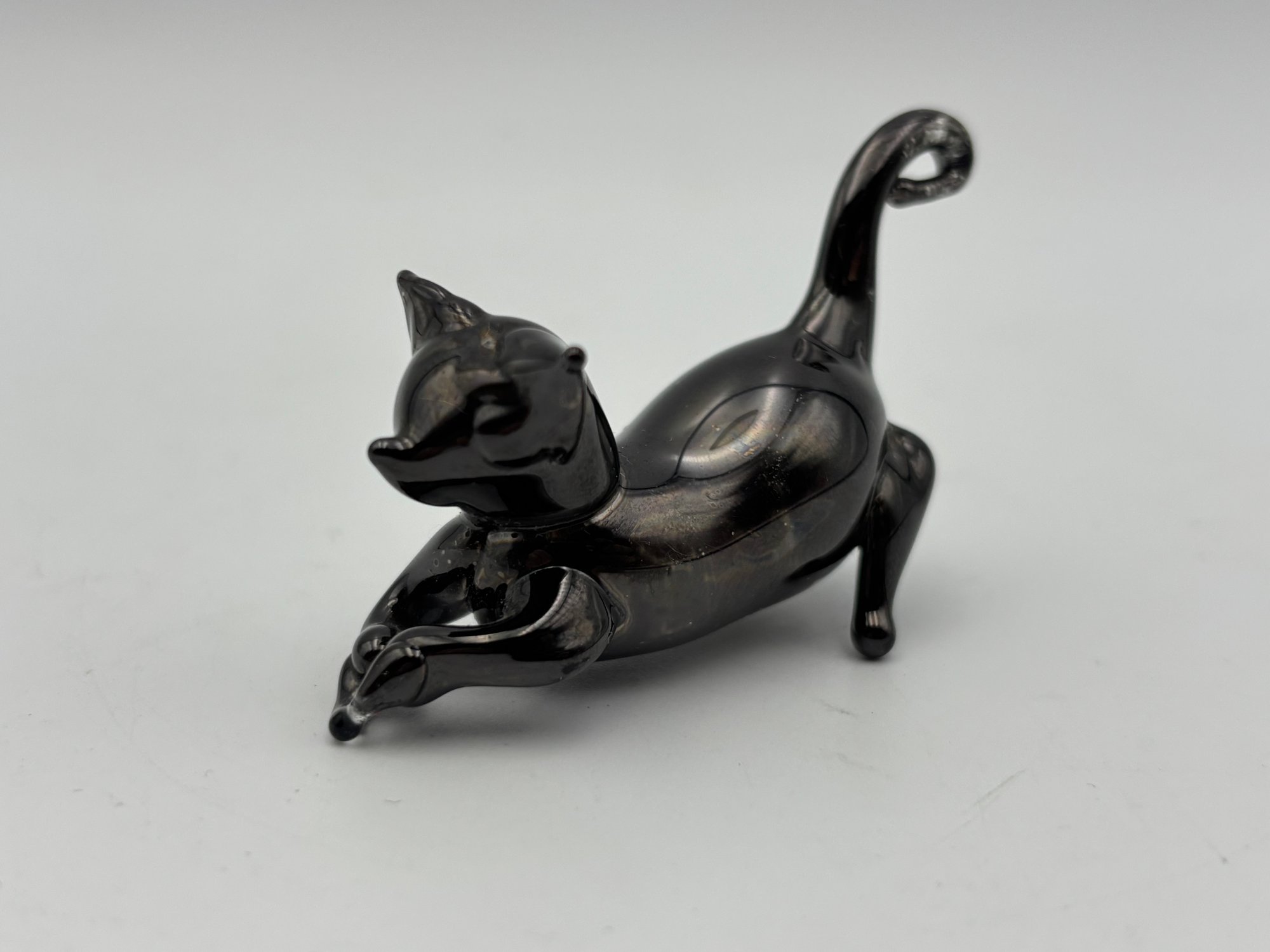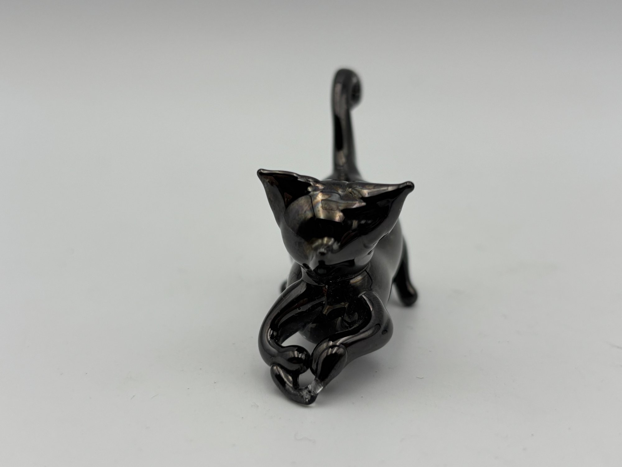 Vintage Hand Blown Black Cat Glass Figure 2.5"