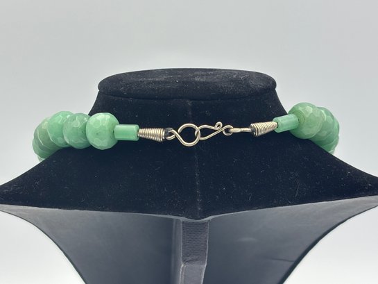Vintage Heavy Green Jadeite Faceted Beaded Bead Necklace
