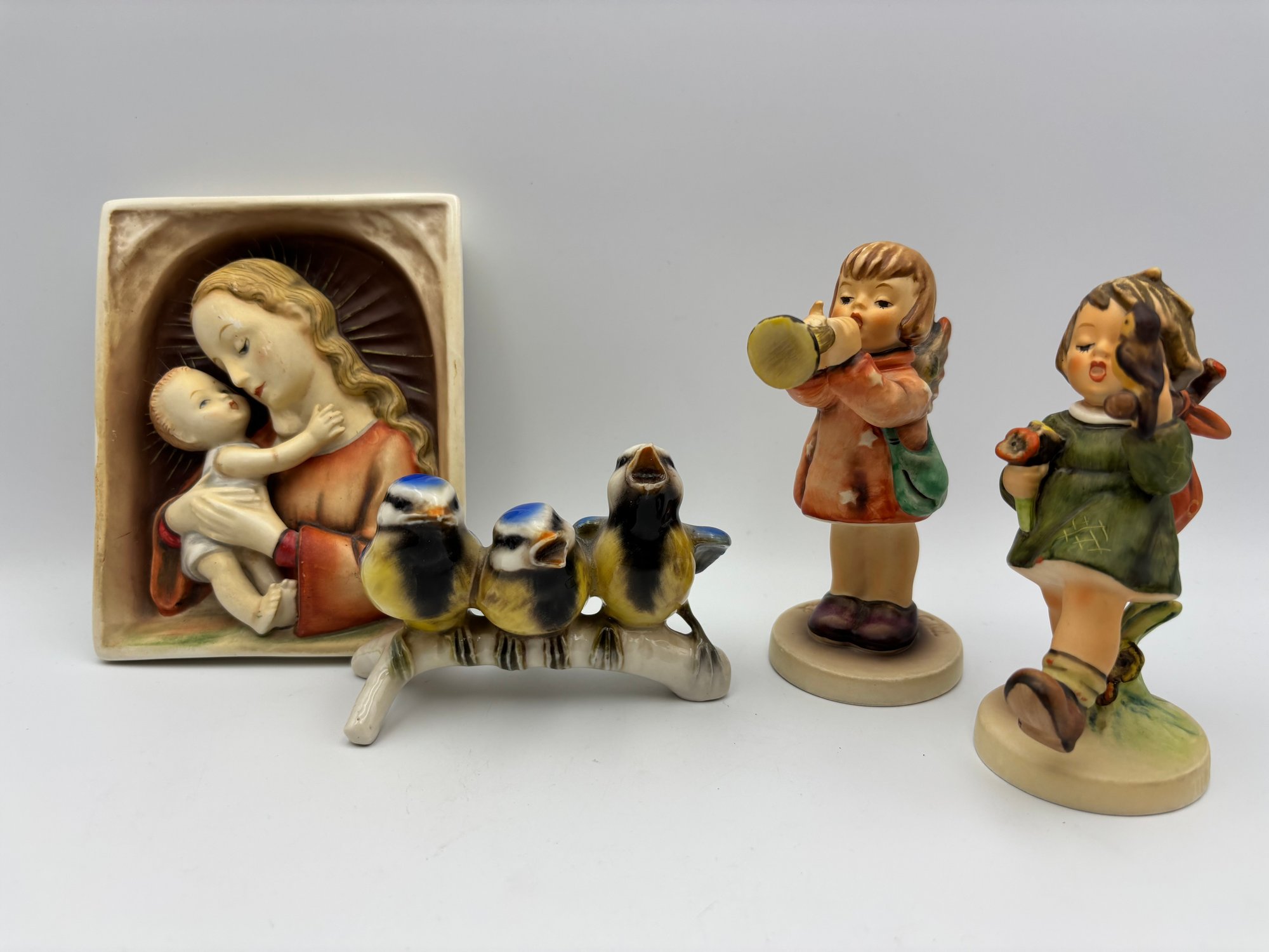 Vintage Hummel Figurine Lot - Bird, & Mary & Jesus Wall Plate Lot