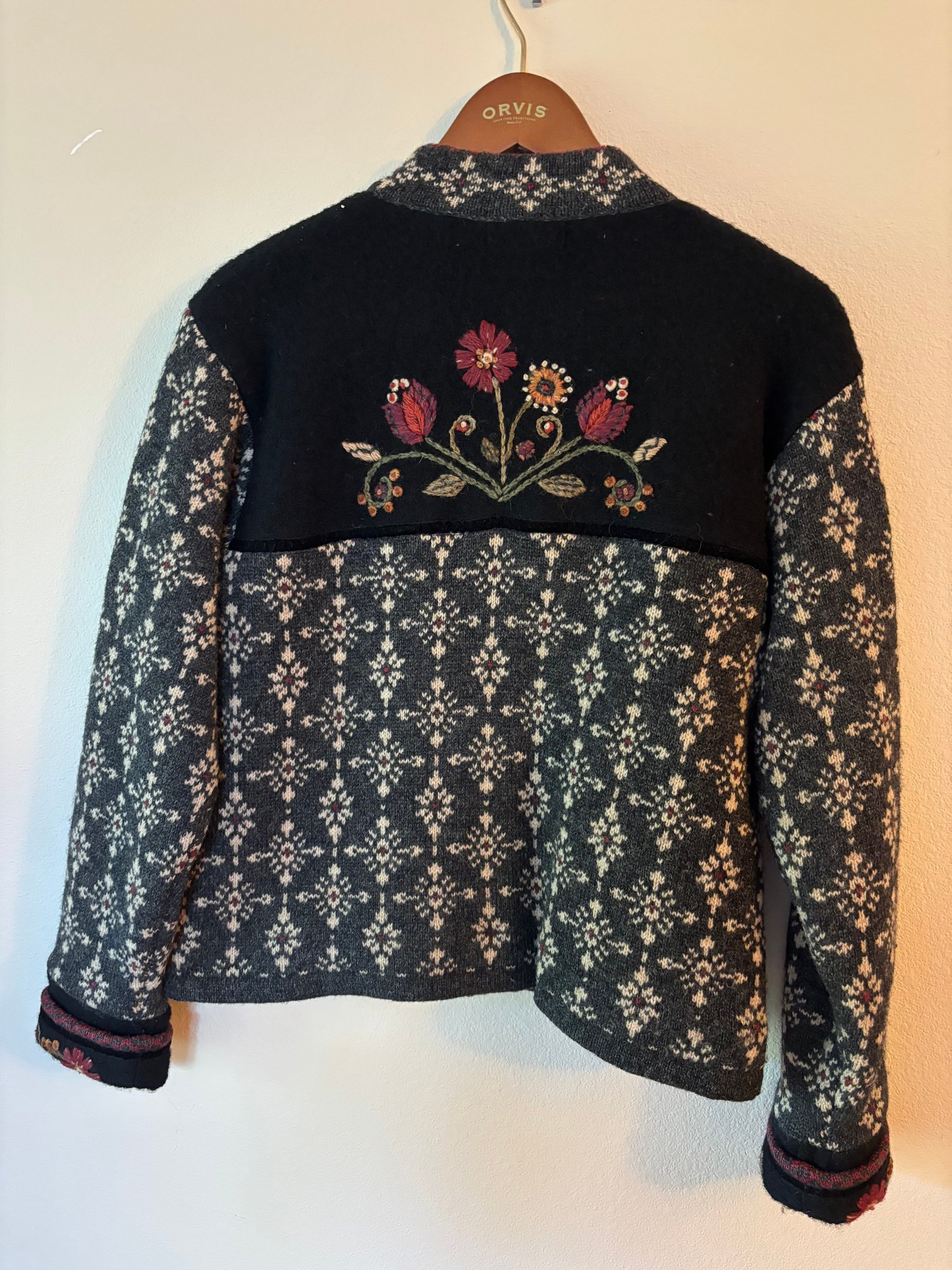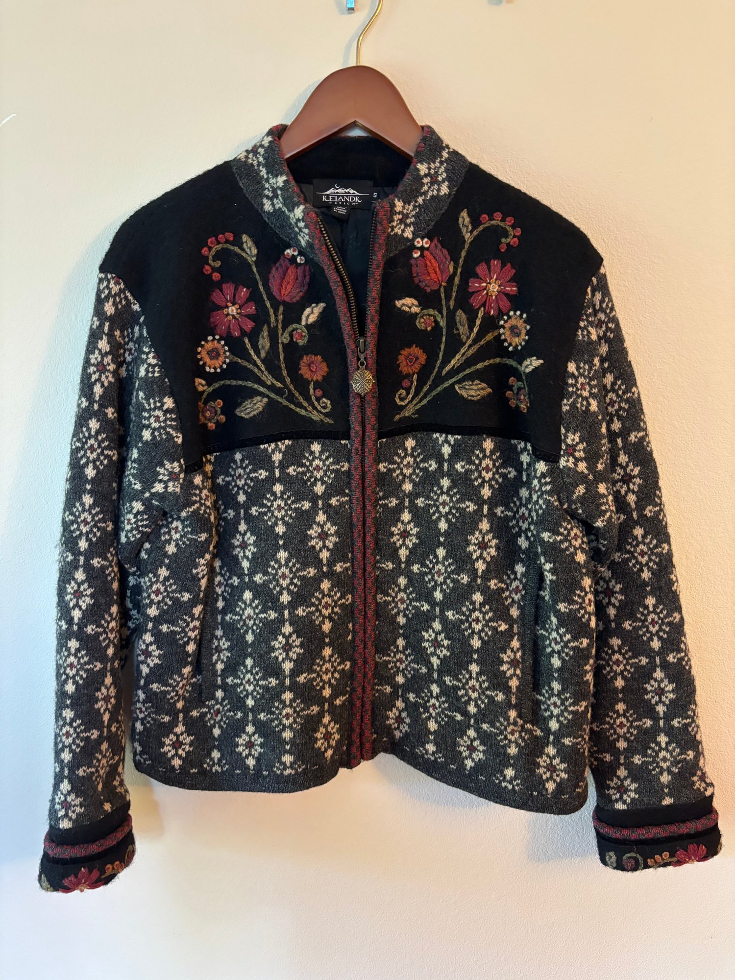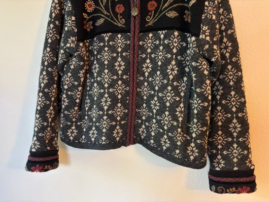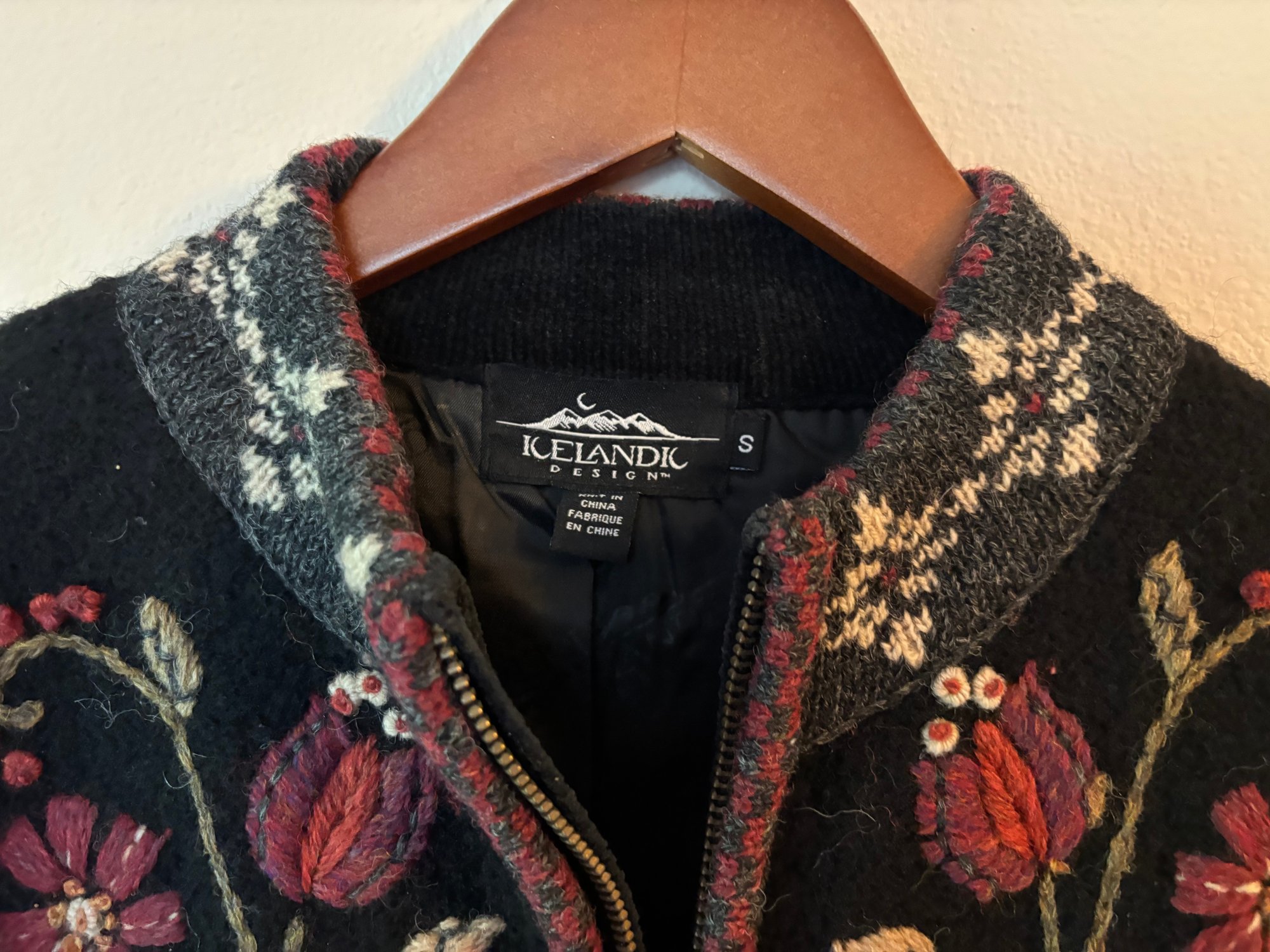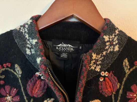 Vintage Icelandic Design Wool Knit Sweater Floral Design Size Small