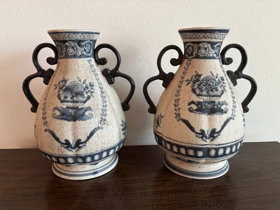 Vintage Large Heavy Pottery Vase Pair 12.5"