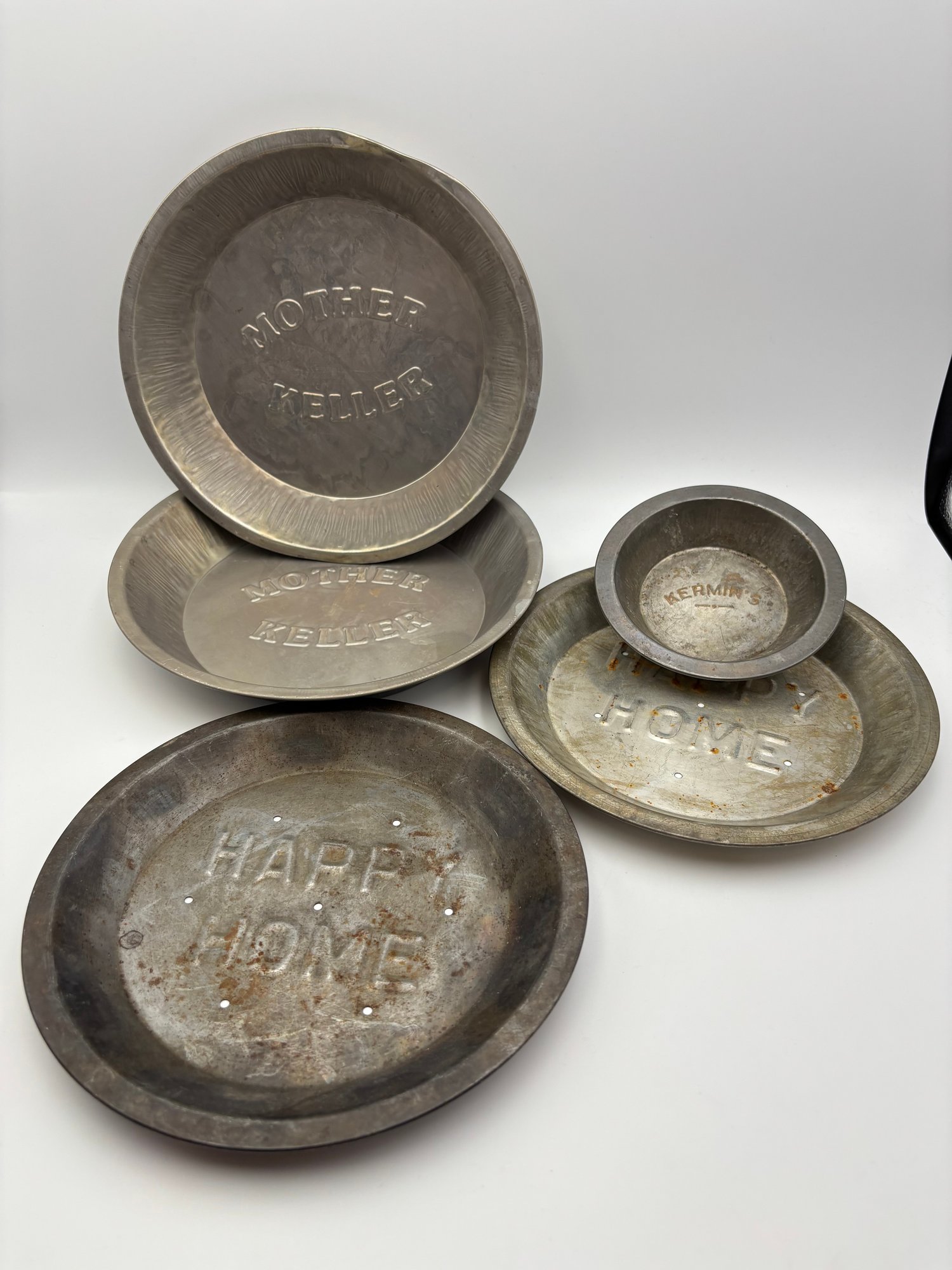 Vintage Lot 5 Of Pie Pans Happy Home, Mother Keller, Kermins