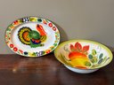 Vintage Lot Of 2 Painted Enamelware Bowl & Platter Large