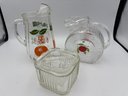 Vintage MCM Fruit Pitchers And Glass Container Lot Of 3