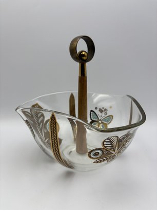 Vintage MCM Mid Century Georges Briard Glass Nut Bowl W/ Gold Scroll Motif