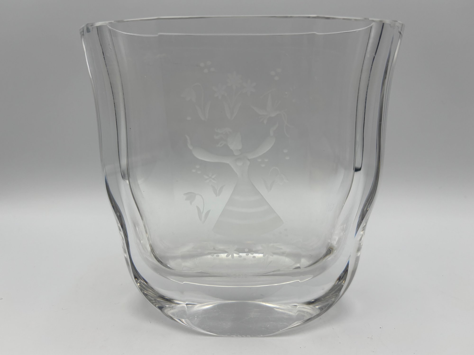 Vintage Orrefos Swedish Art Crystal Glass Vase With Girl And Flowers