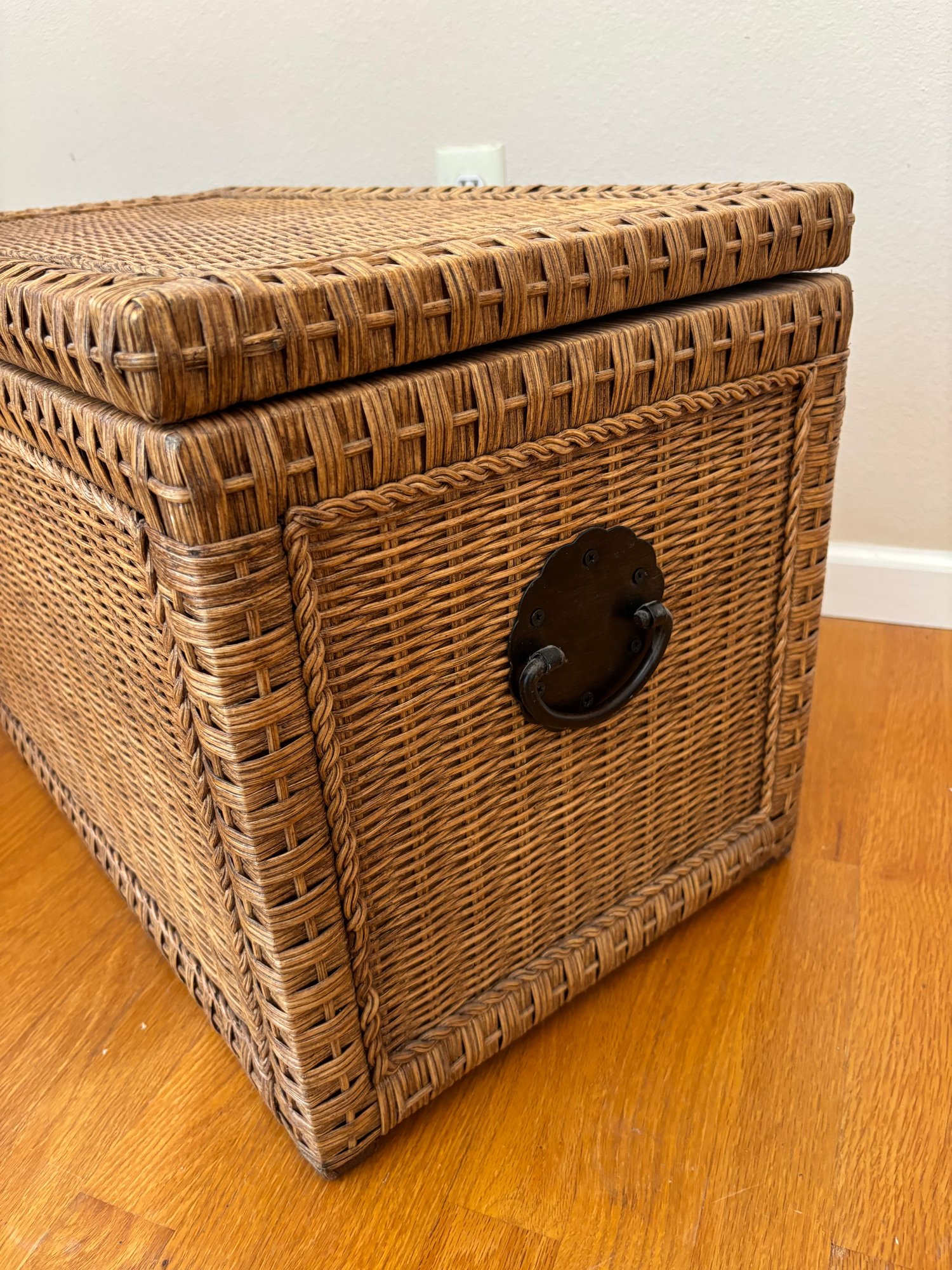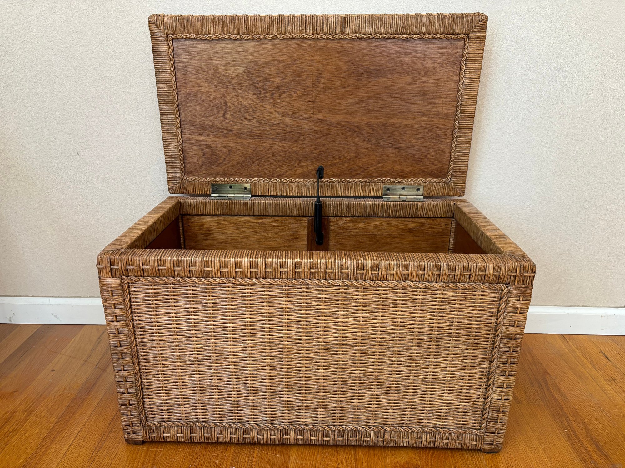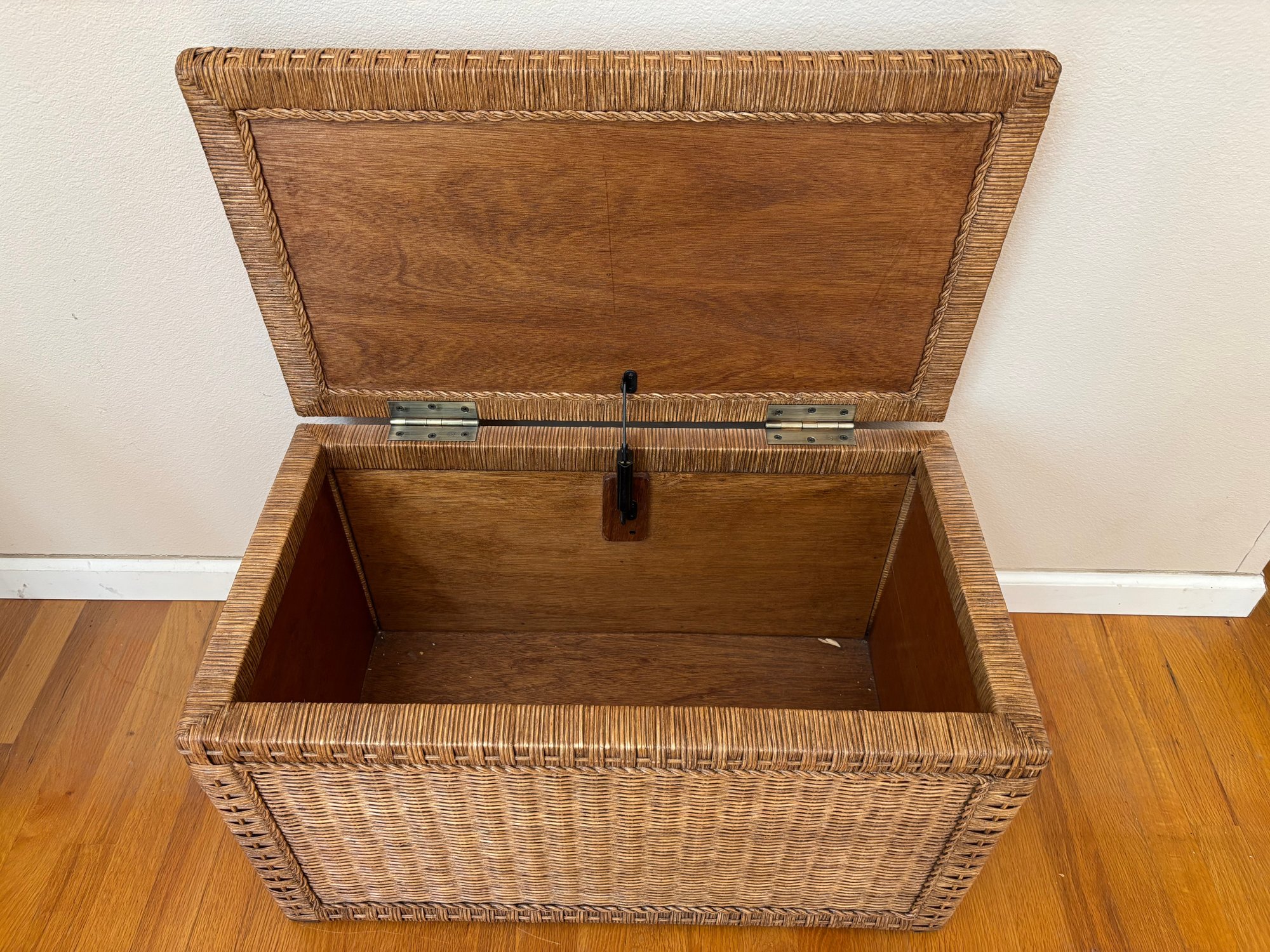 Vintage Pier 1 Handwoven Wicker Weave & Wood Storage Trunk Chest #2