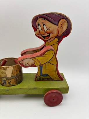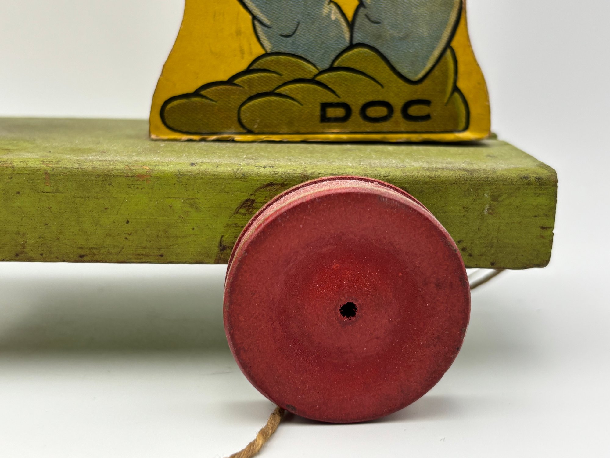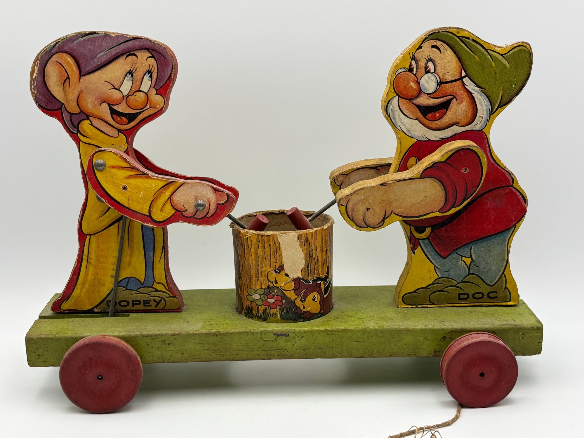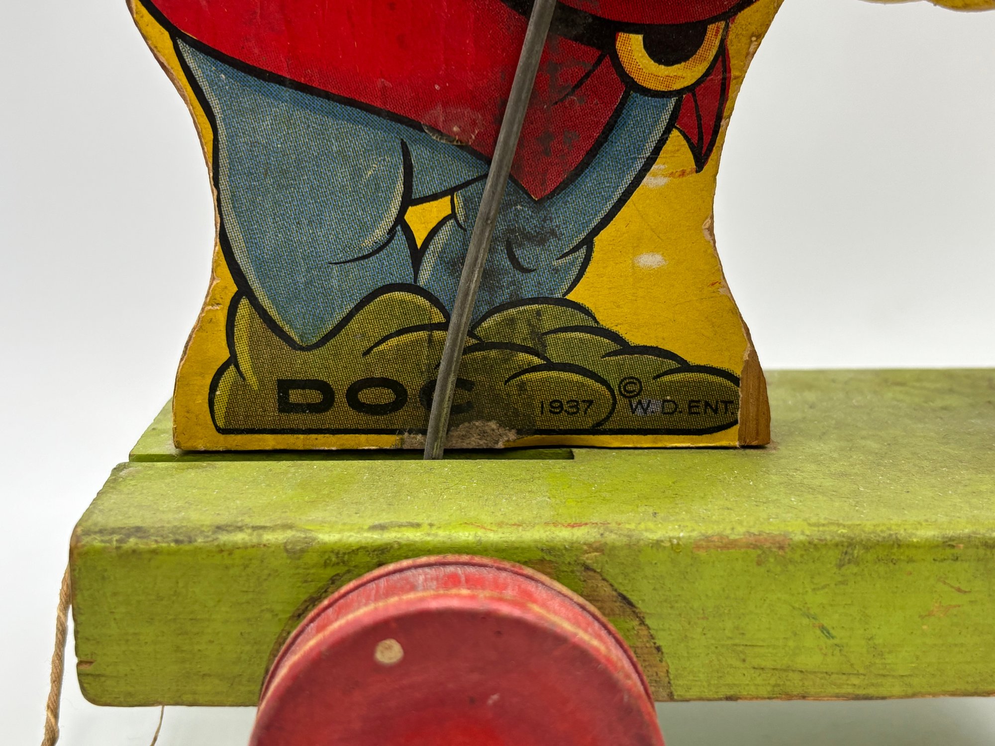 Vintage Rare Hard To Find 1930's Fisher Price #770 Wooden Pull Toy Doc & Dopey Snow White Seven Dwarfs