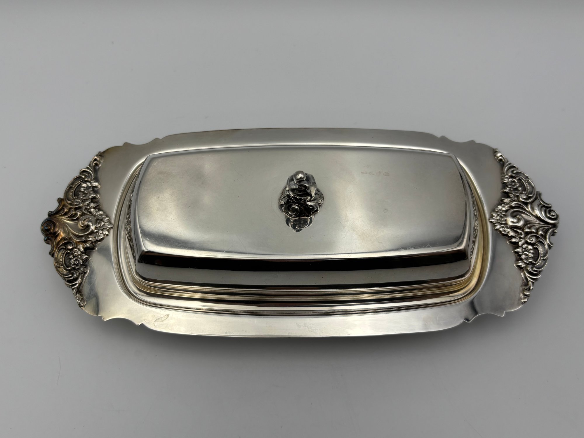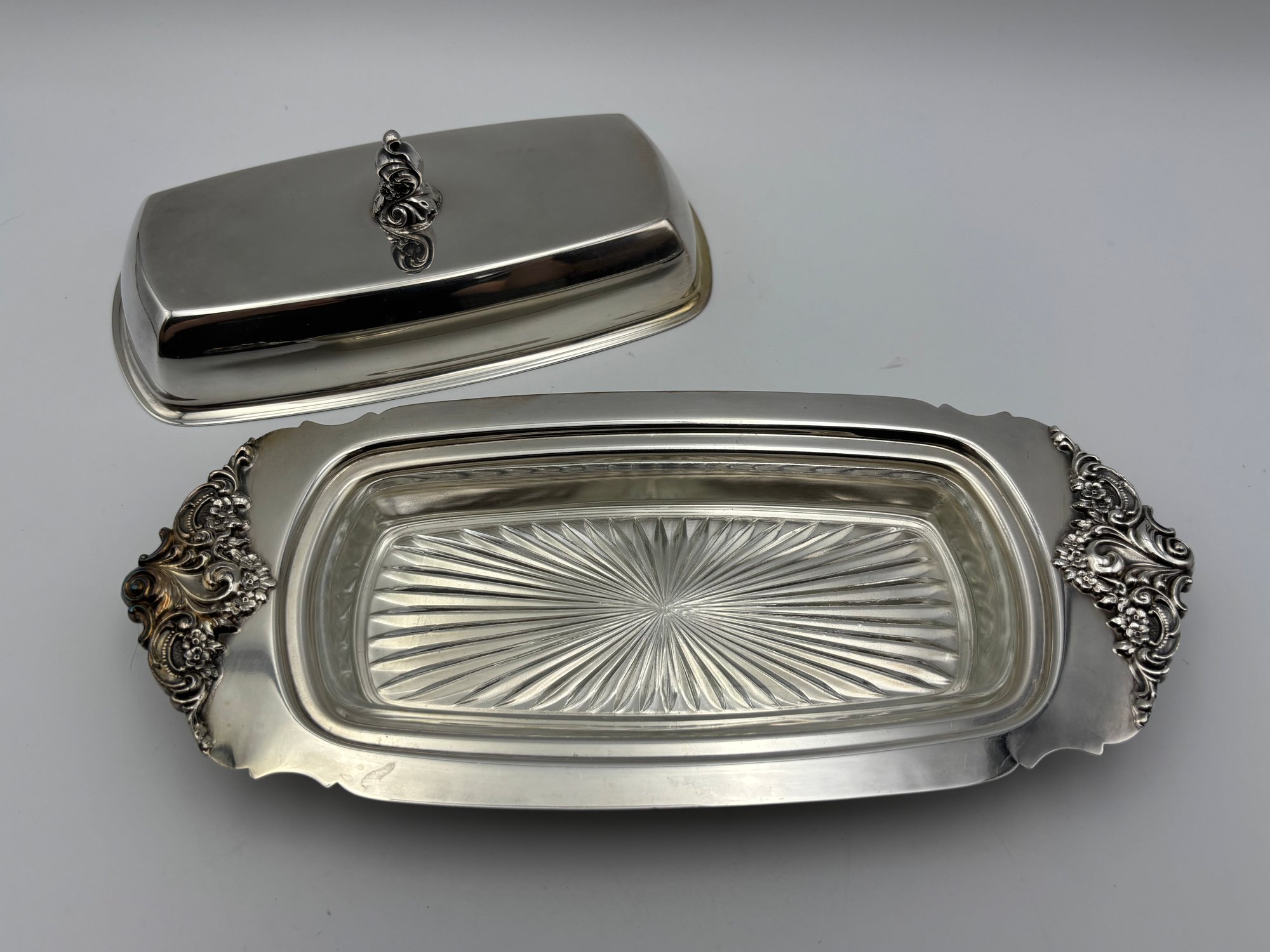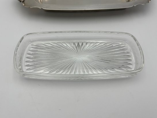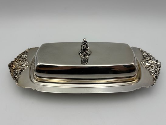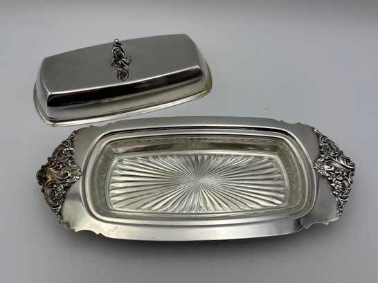 Vintage Silver Plated Baroque By Wallace Butter Dish With Cover & Glass Insert