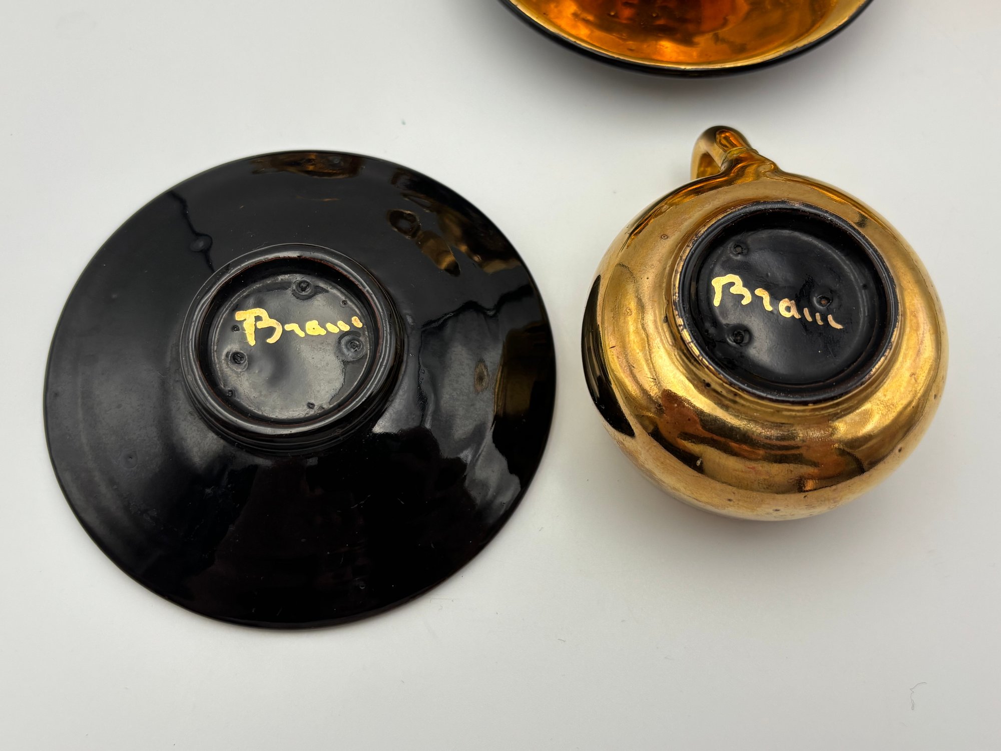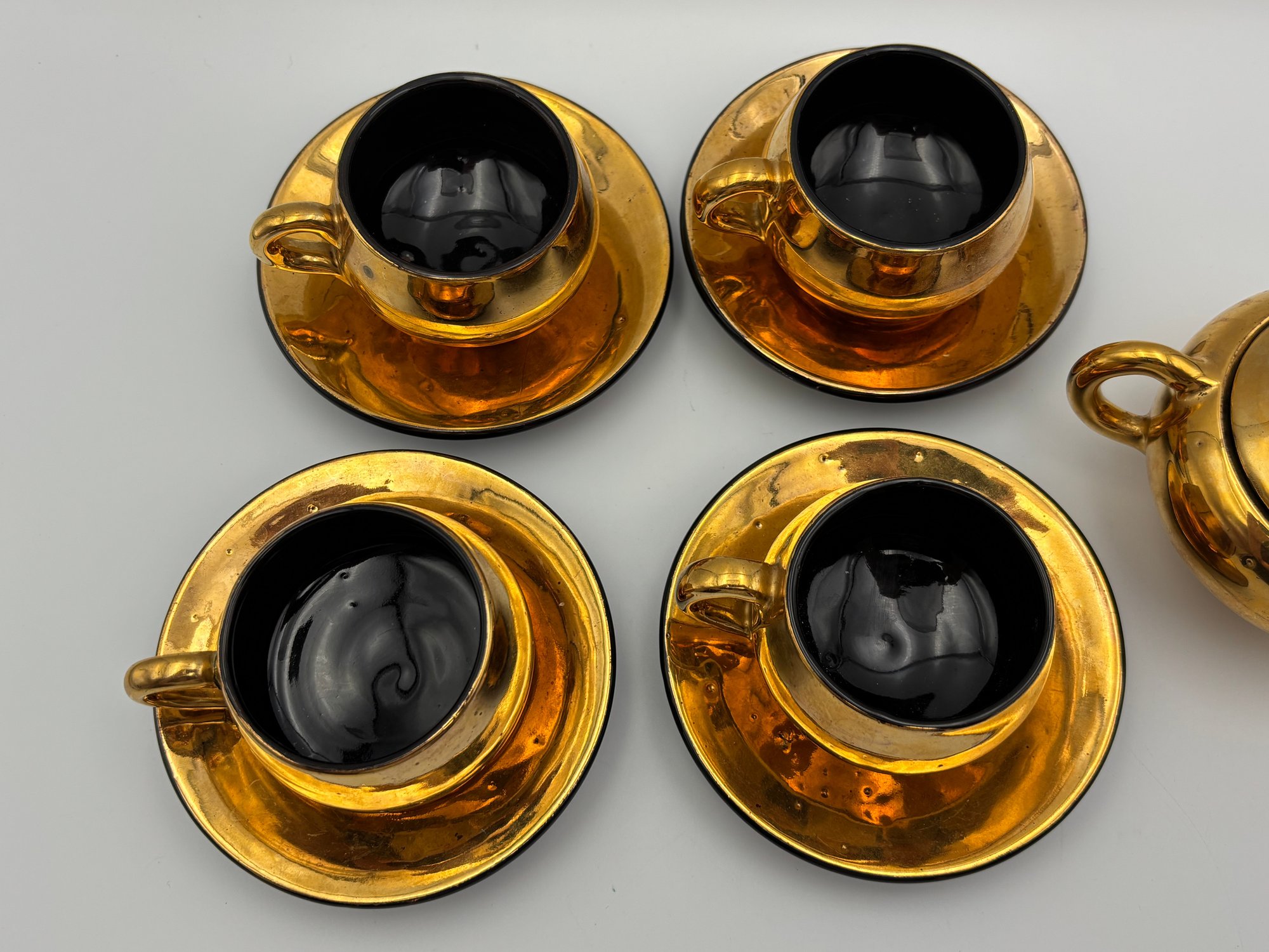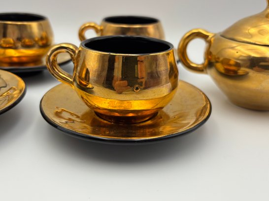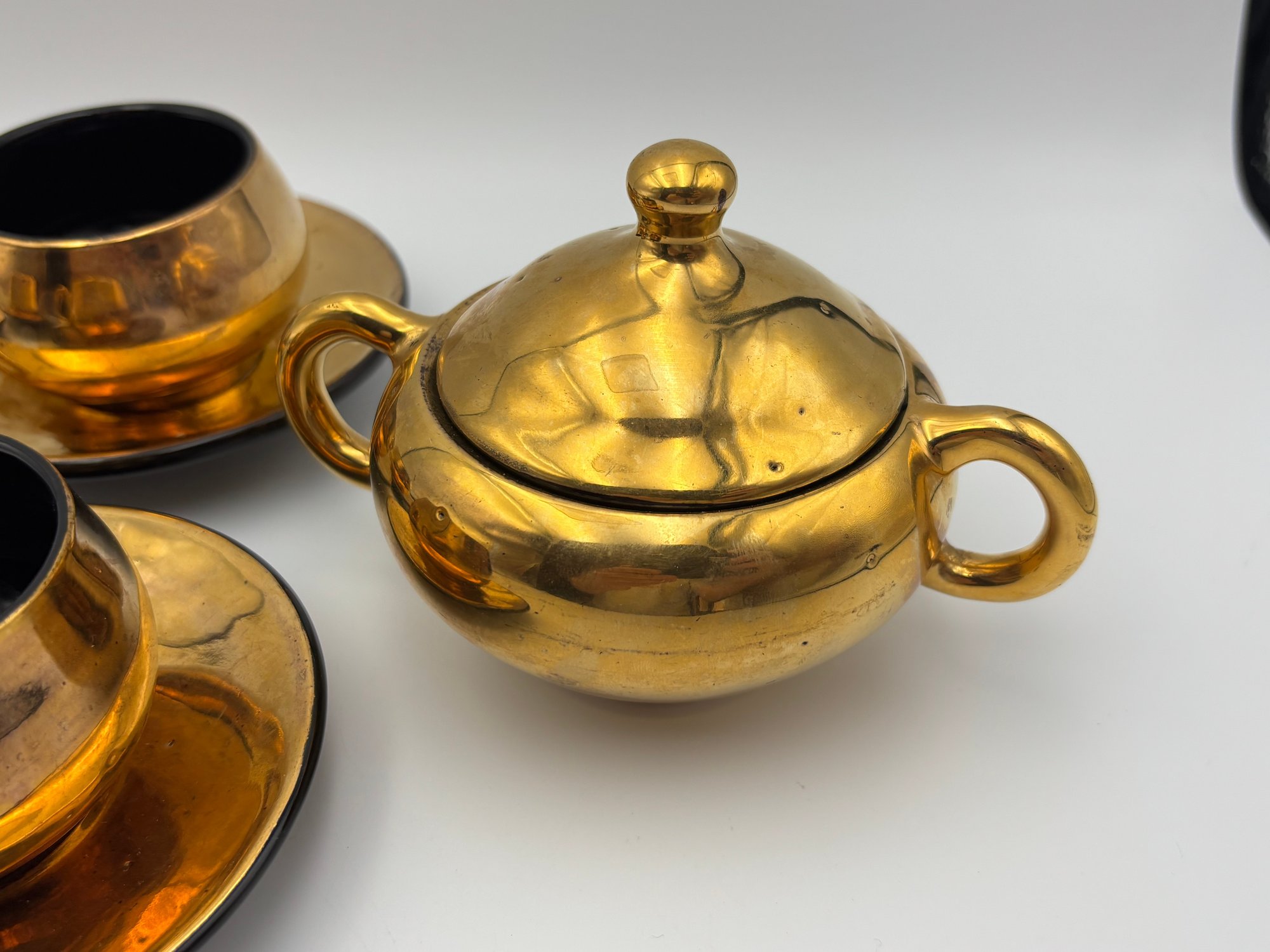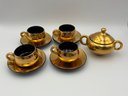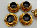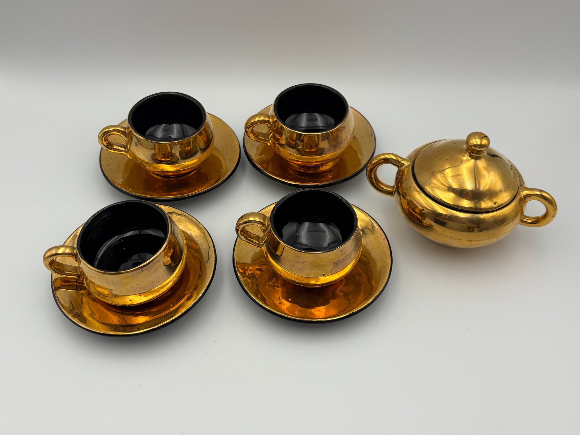 Vintage Small Metallic Gold Ceramic Tea Espresso Coffee Cup Set With Saucers, Cups & Sugar Bowl