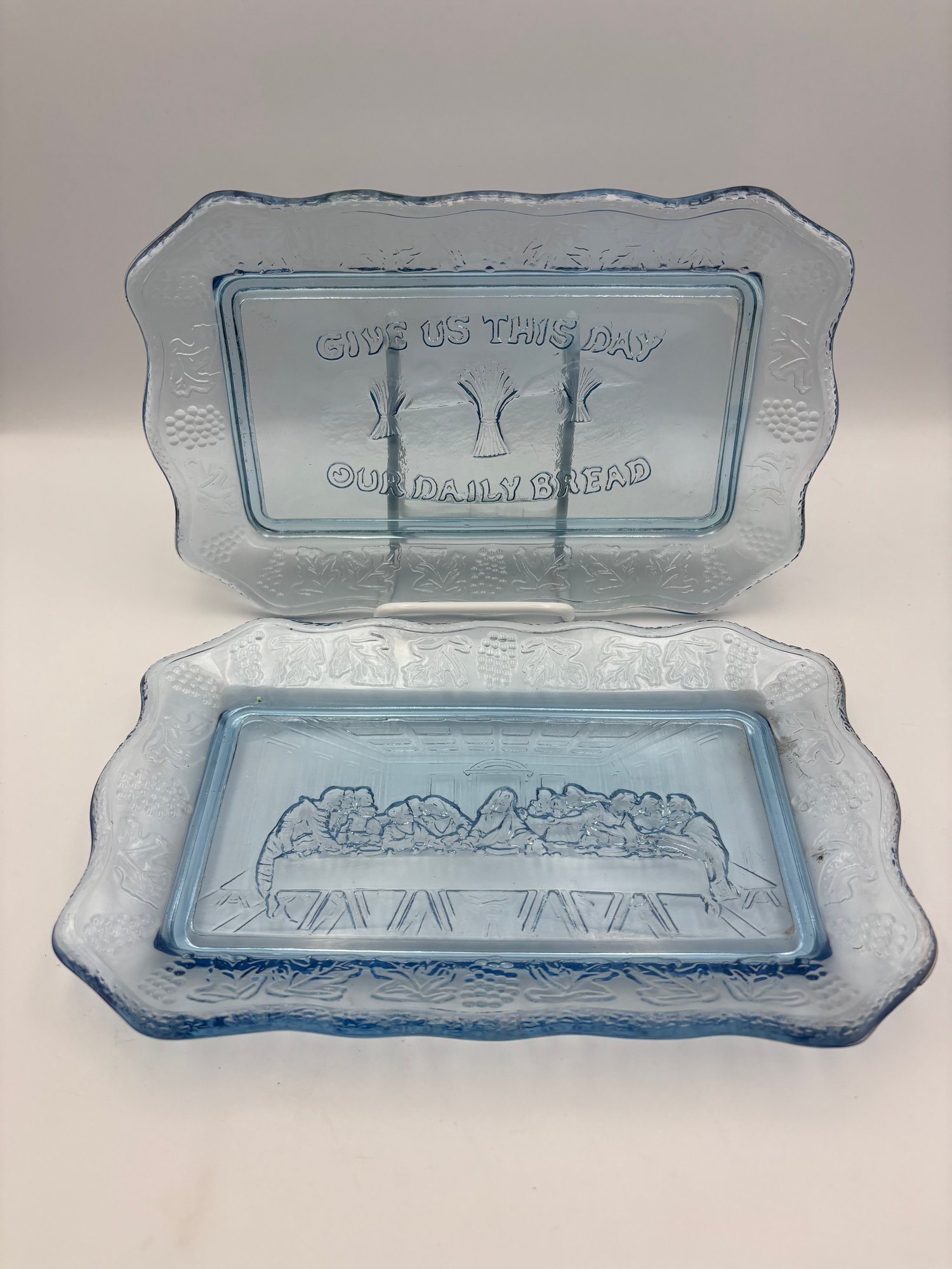 Vintage Tiara Blue Glass Bread Plate, Lot Of 2 11"