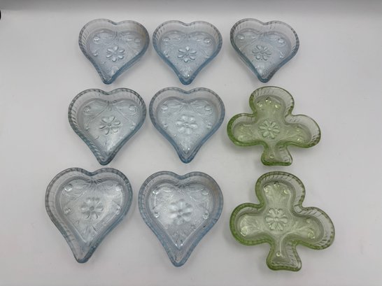 Vintage Tiara Nut Dishes, Light Blue Hearts And Chantilly Green Shamrocks Lot Of 9