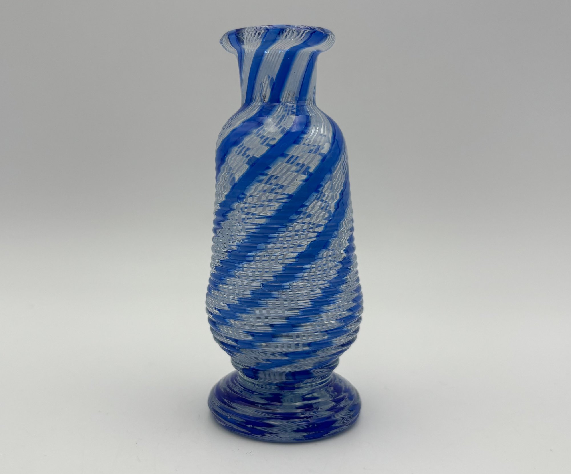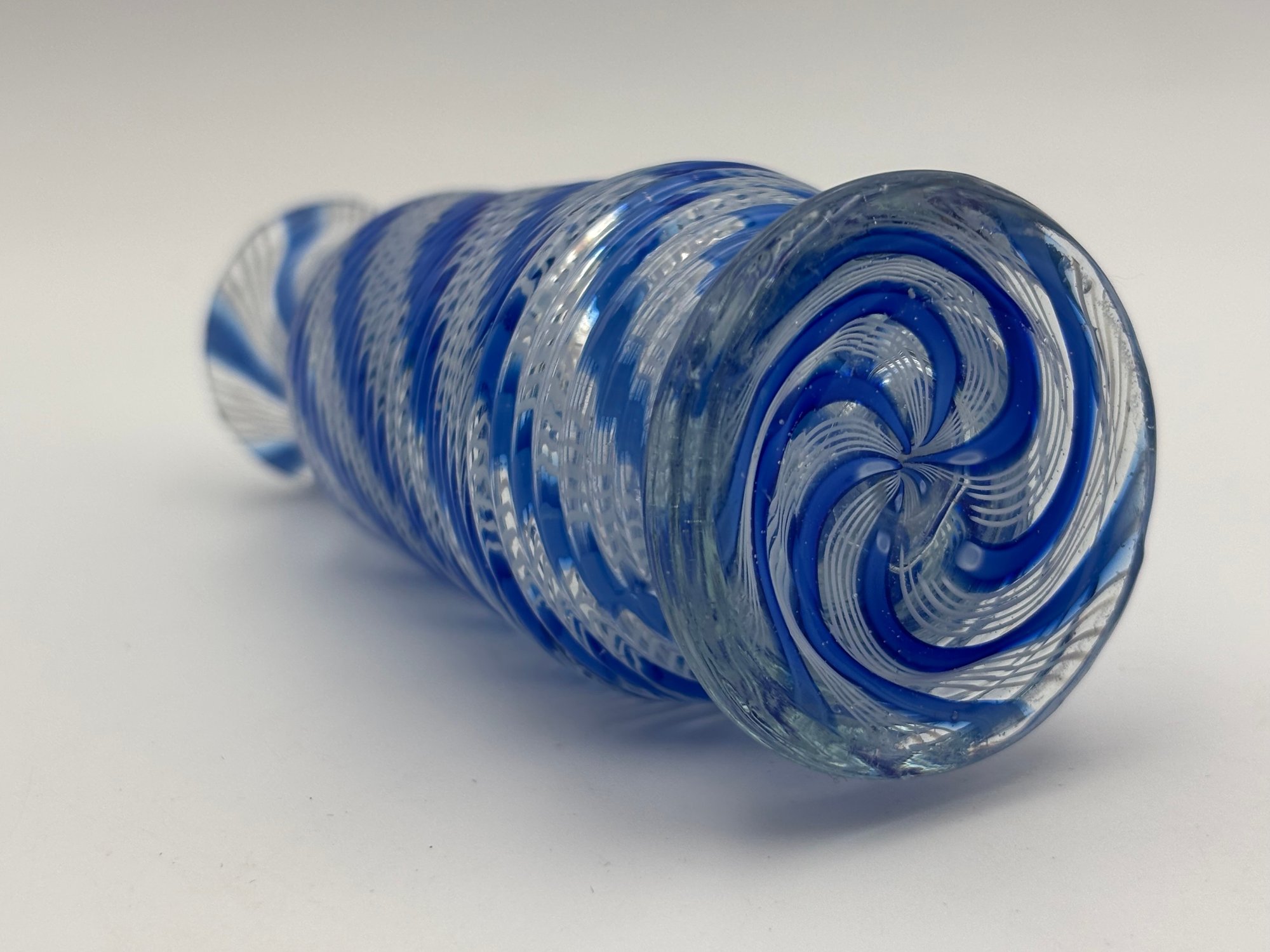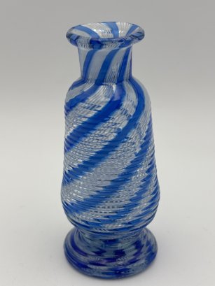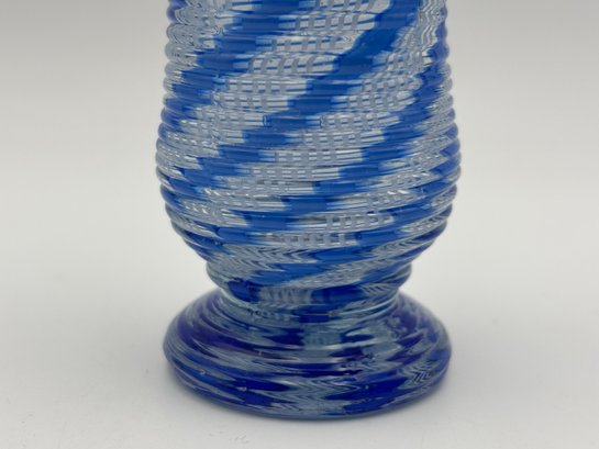 Vintage Turkish Cobalt Blue Spiral Latticino 4" Art Glass Vase