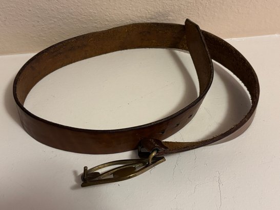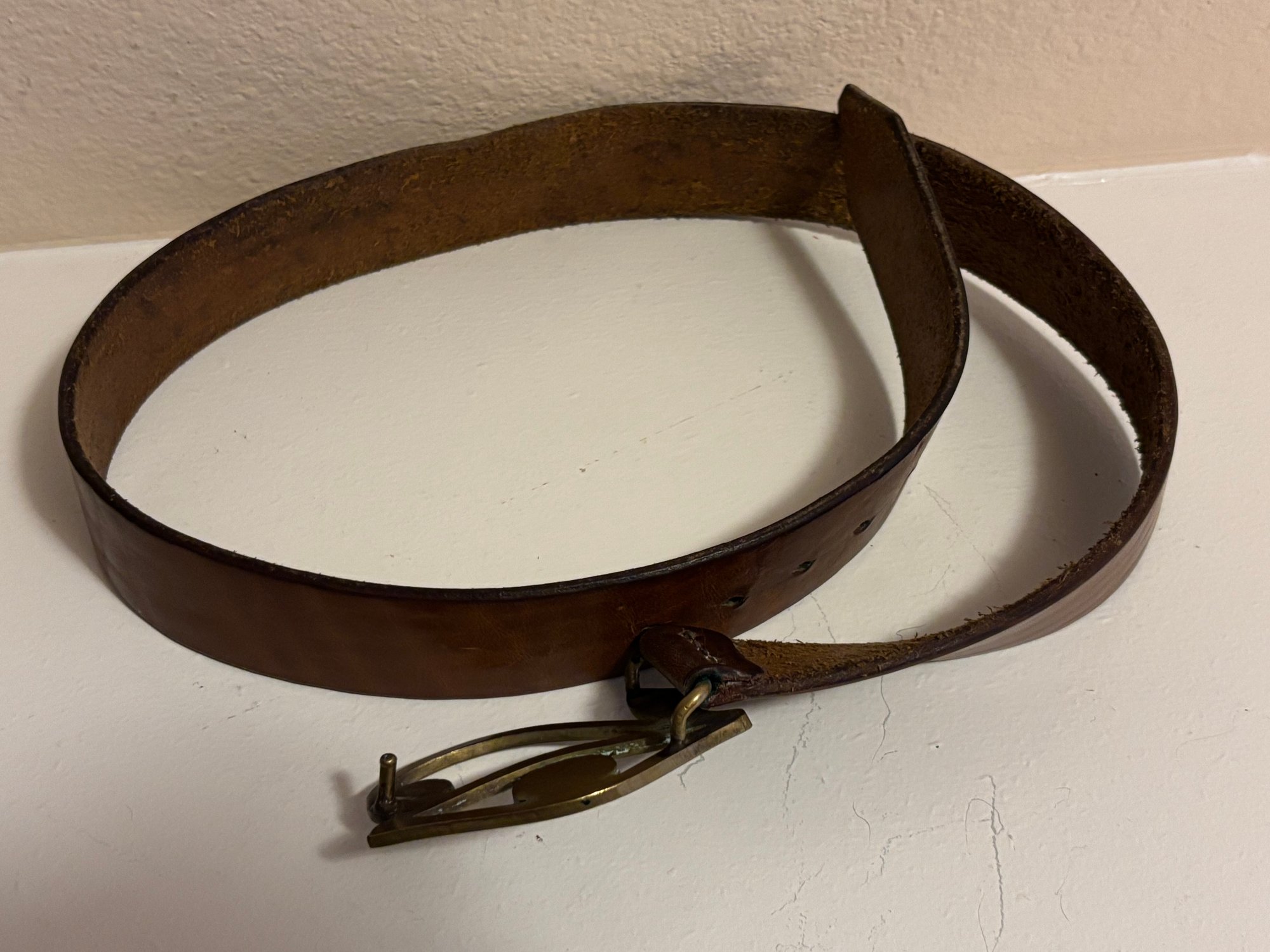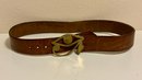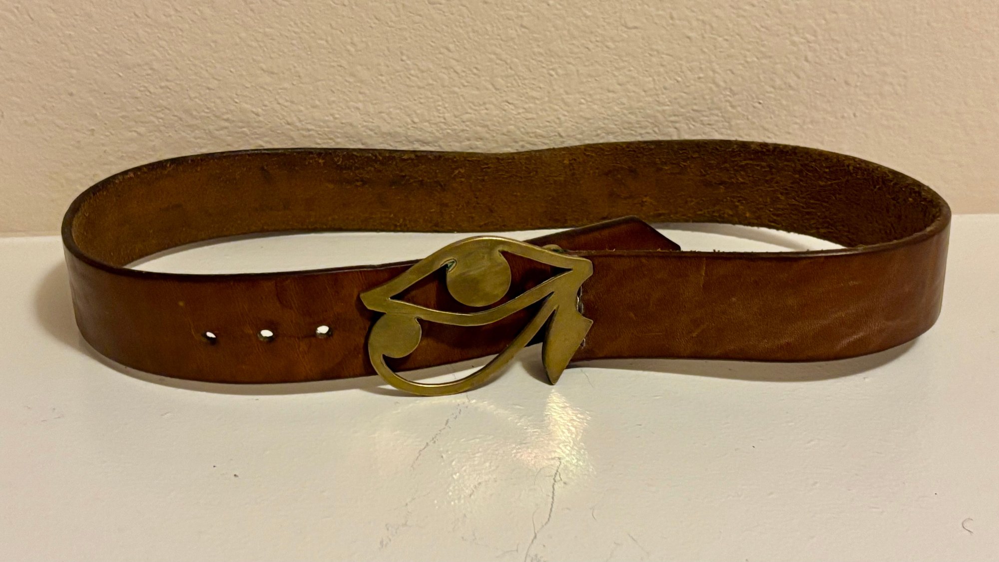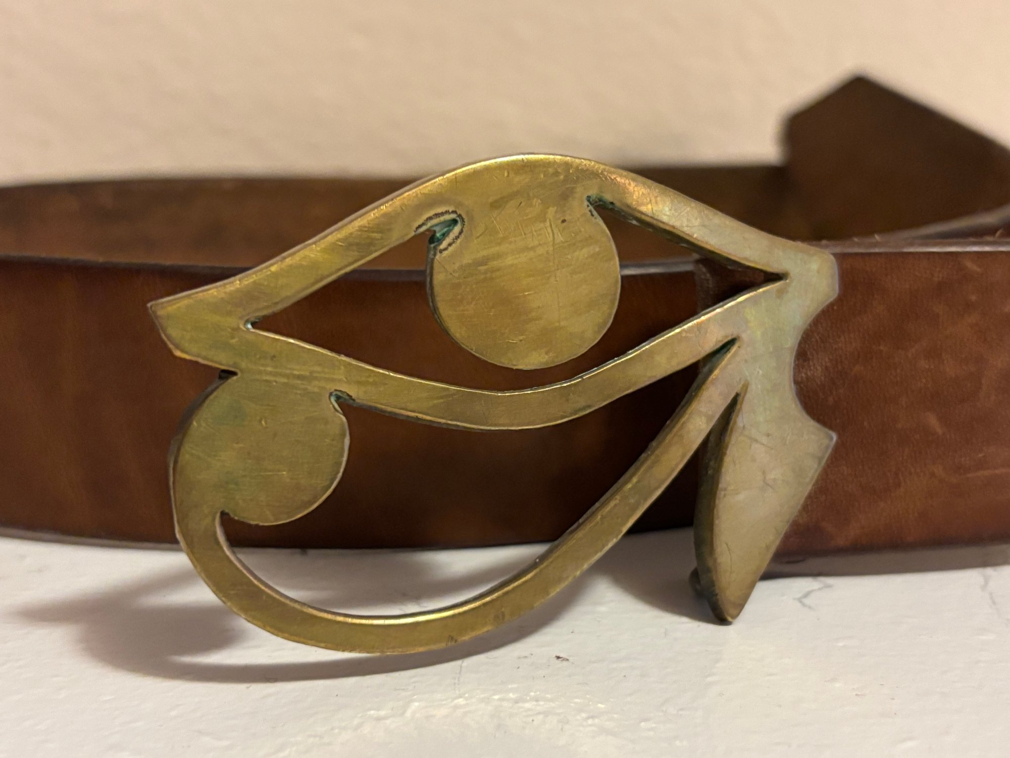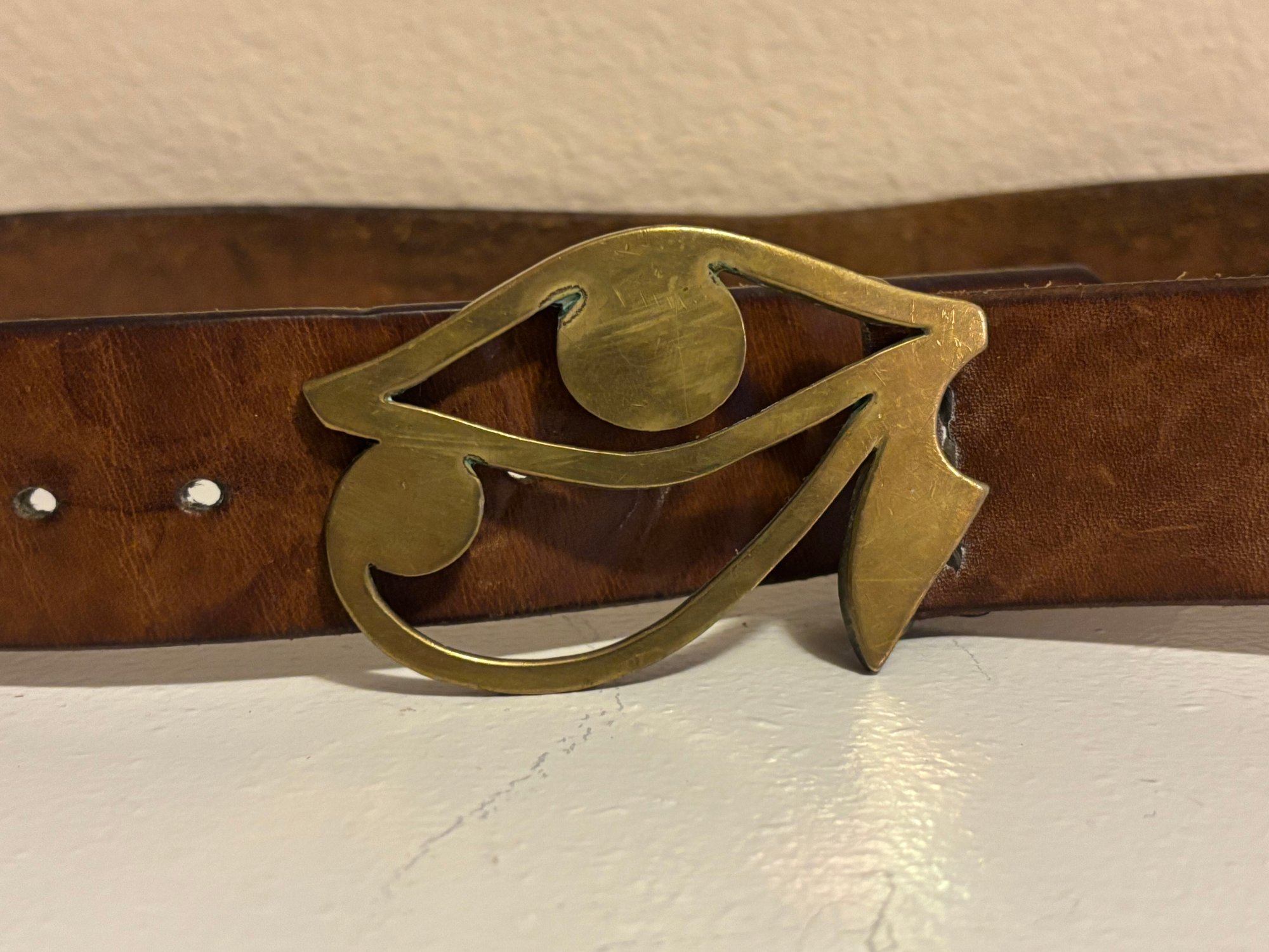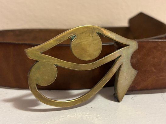 Vintage Women's Brown Leather Belt With Brass Eye Of Horus Buckle