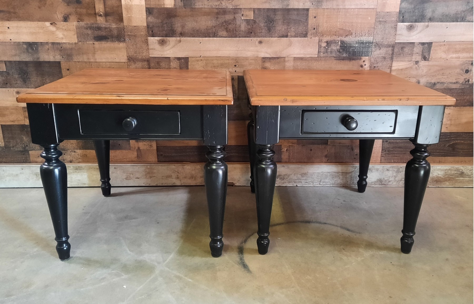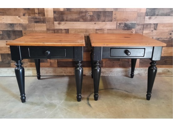 Pair Black And Honey Pine End Tables Lamp Tables