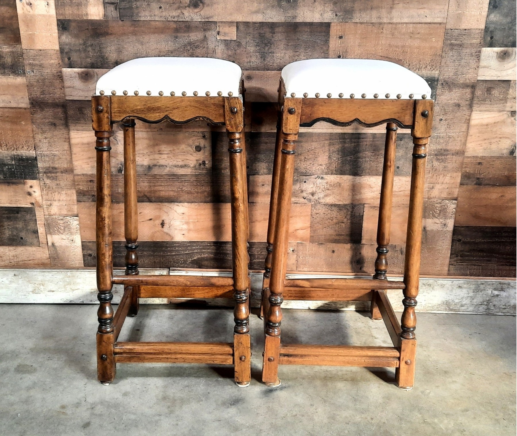 High quality old-world style hardwood frames. The muslin seats have stains. The frames are worth recovering.