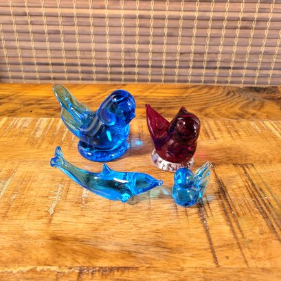 Art Glass Birds and Dolphin