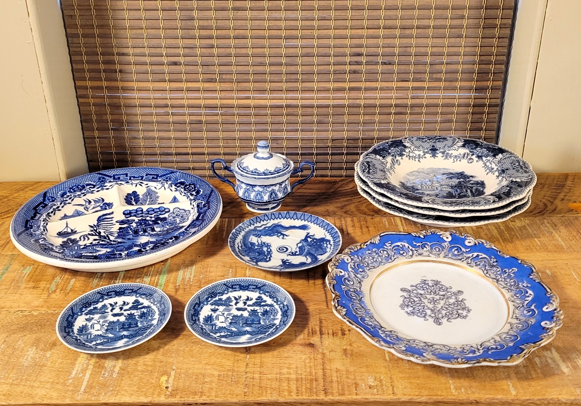 Dinner plate, soup bowls, etc. Vintage with some wear and tear.