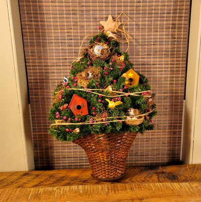 Christmas Tree with Birds, Wall Hung 1/2 Tree in Basket