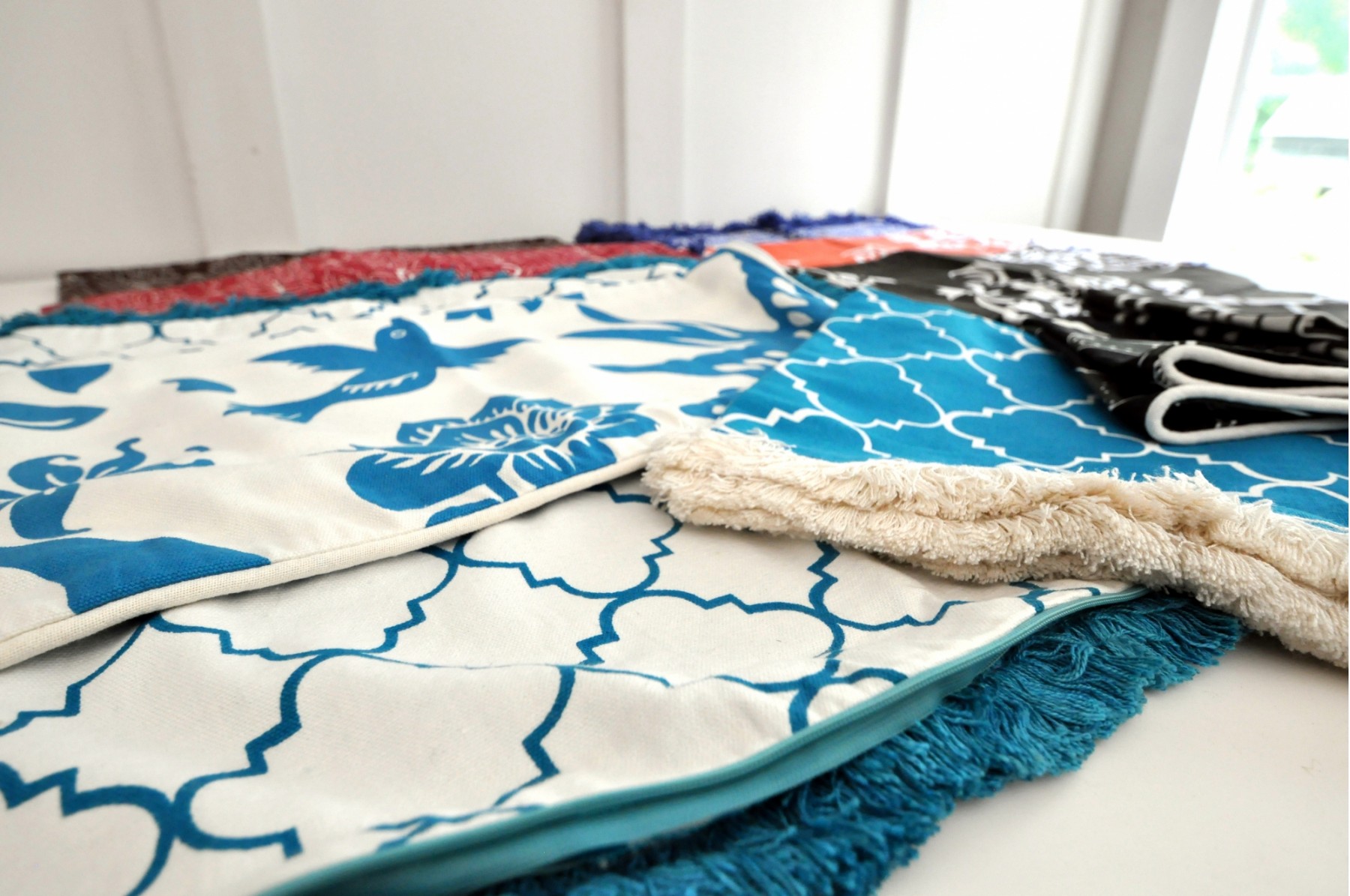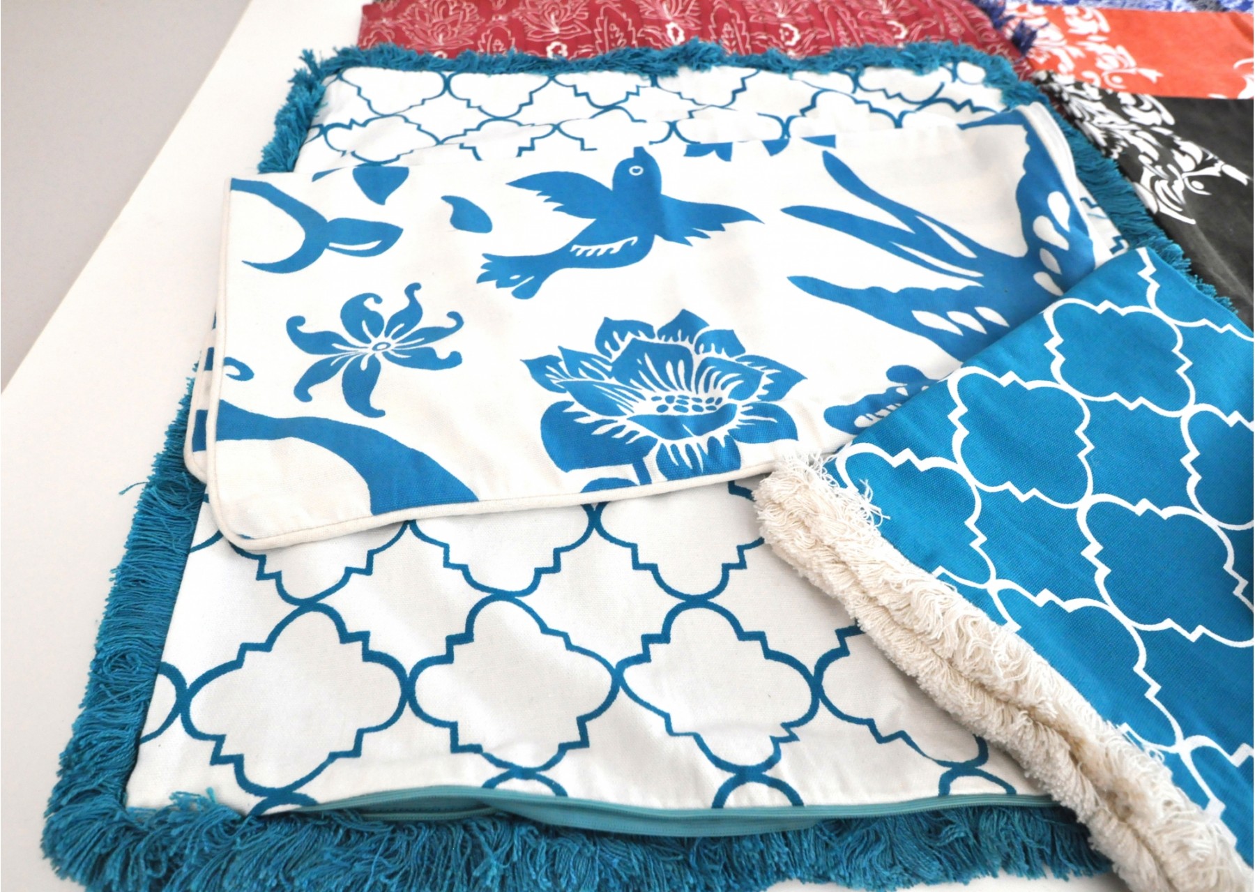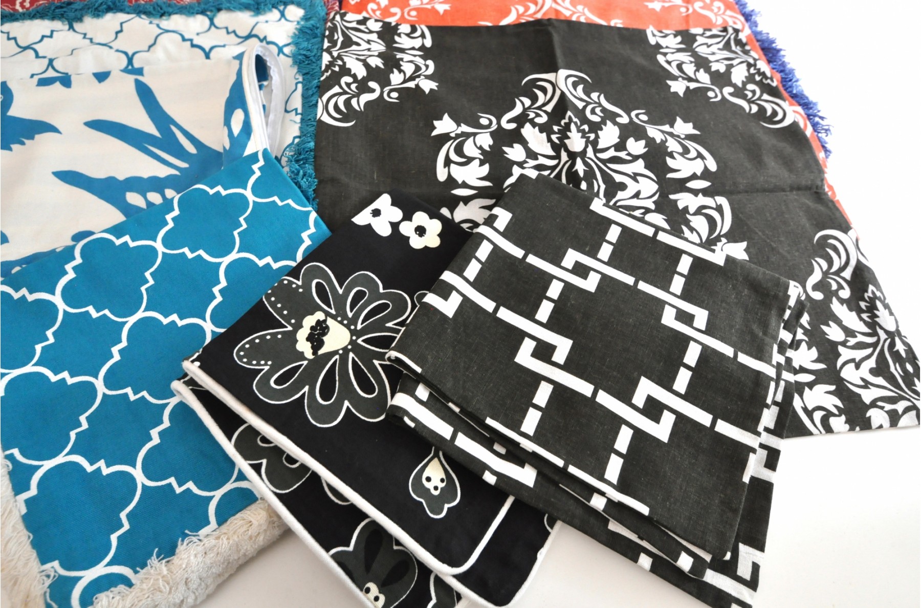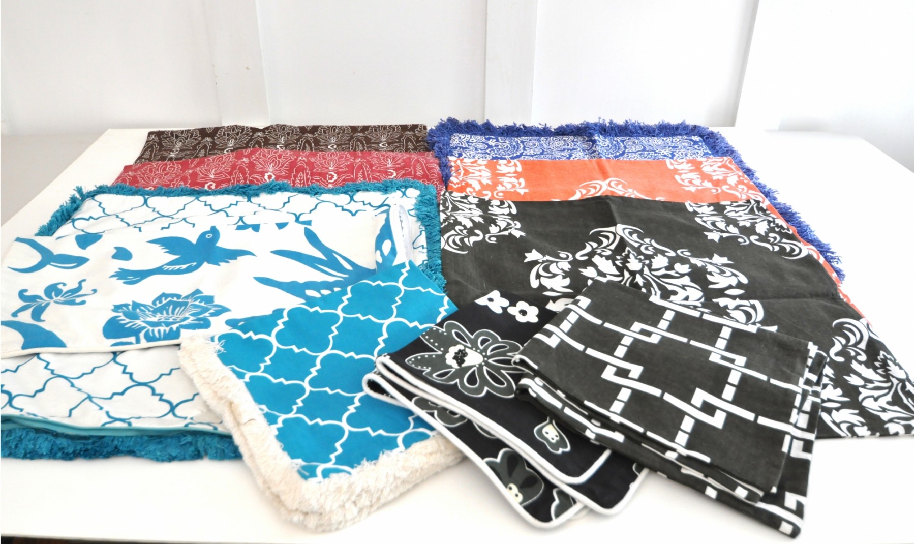 10 Cotton or cotton-blend pillow covers, approx. 18" to 20" square.