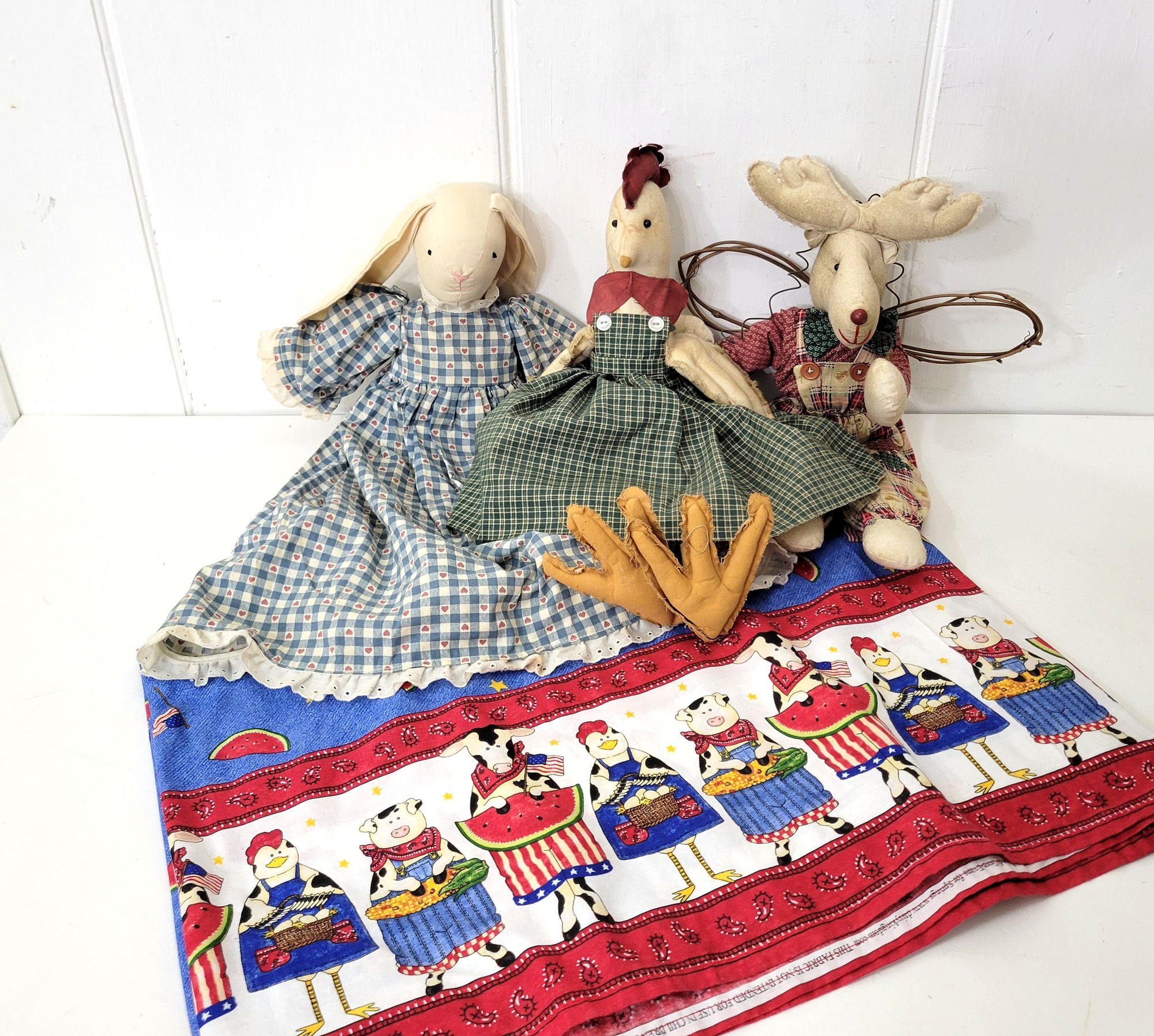 Country Folk Dolls and Barnyard Tablecloth
